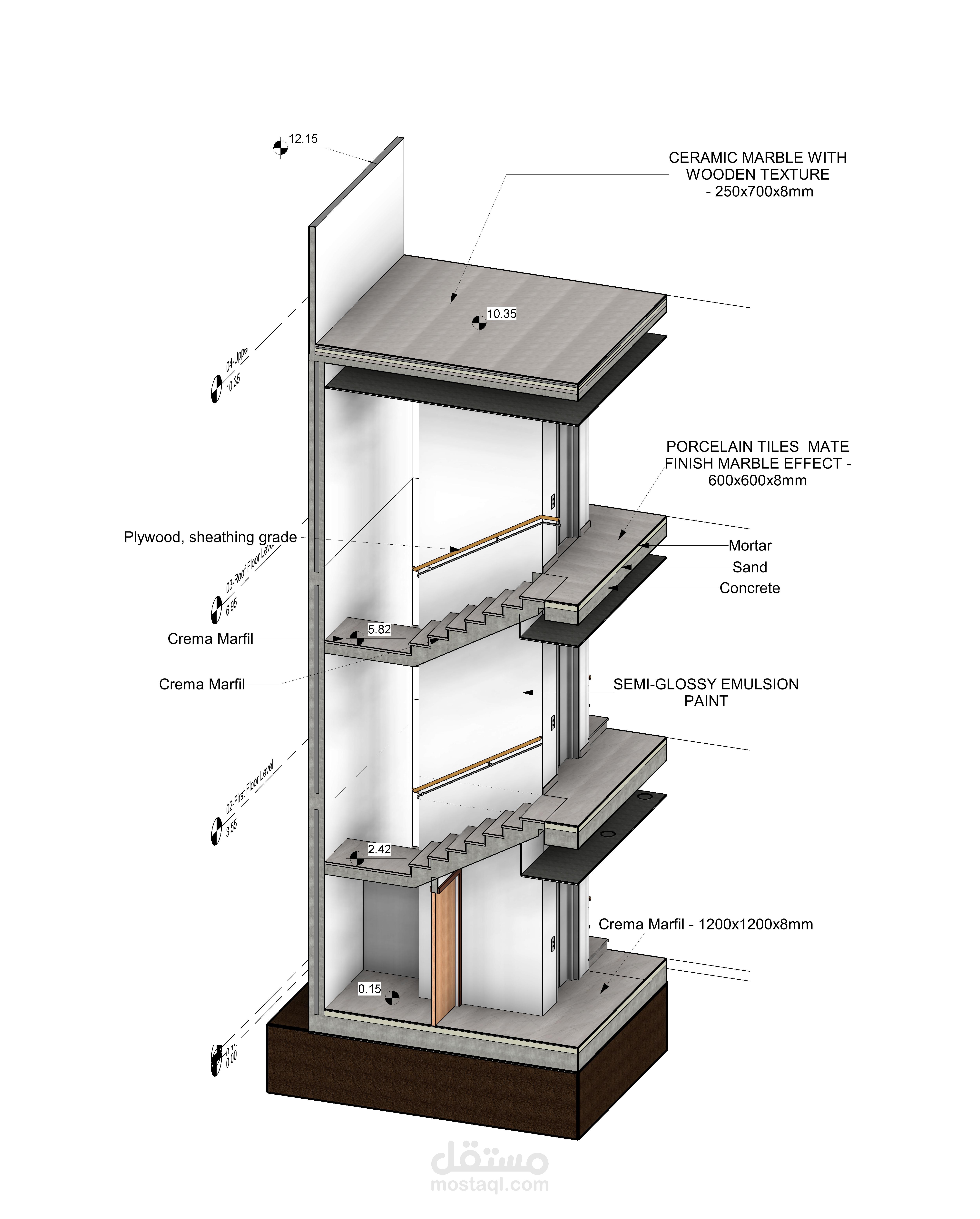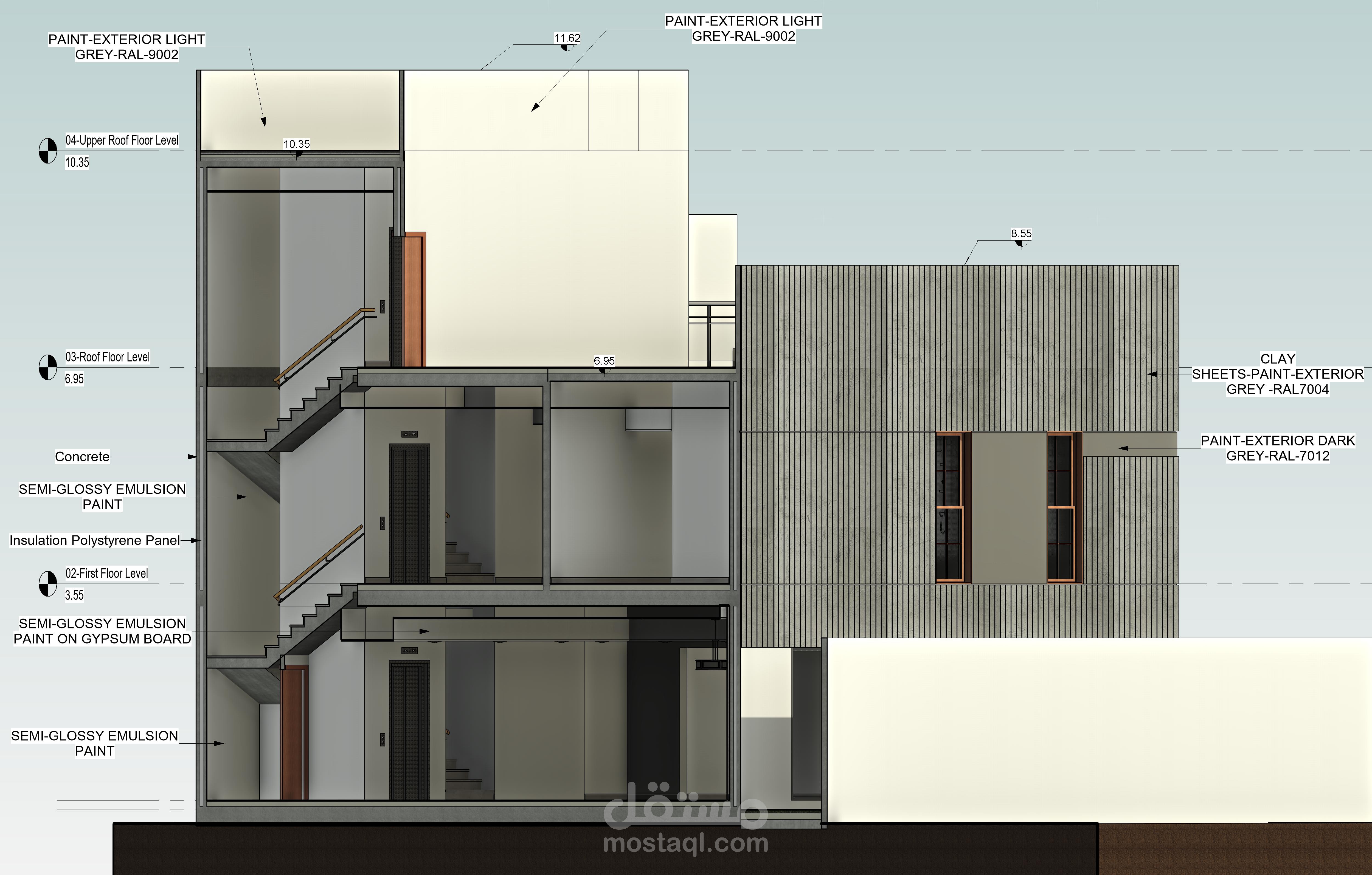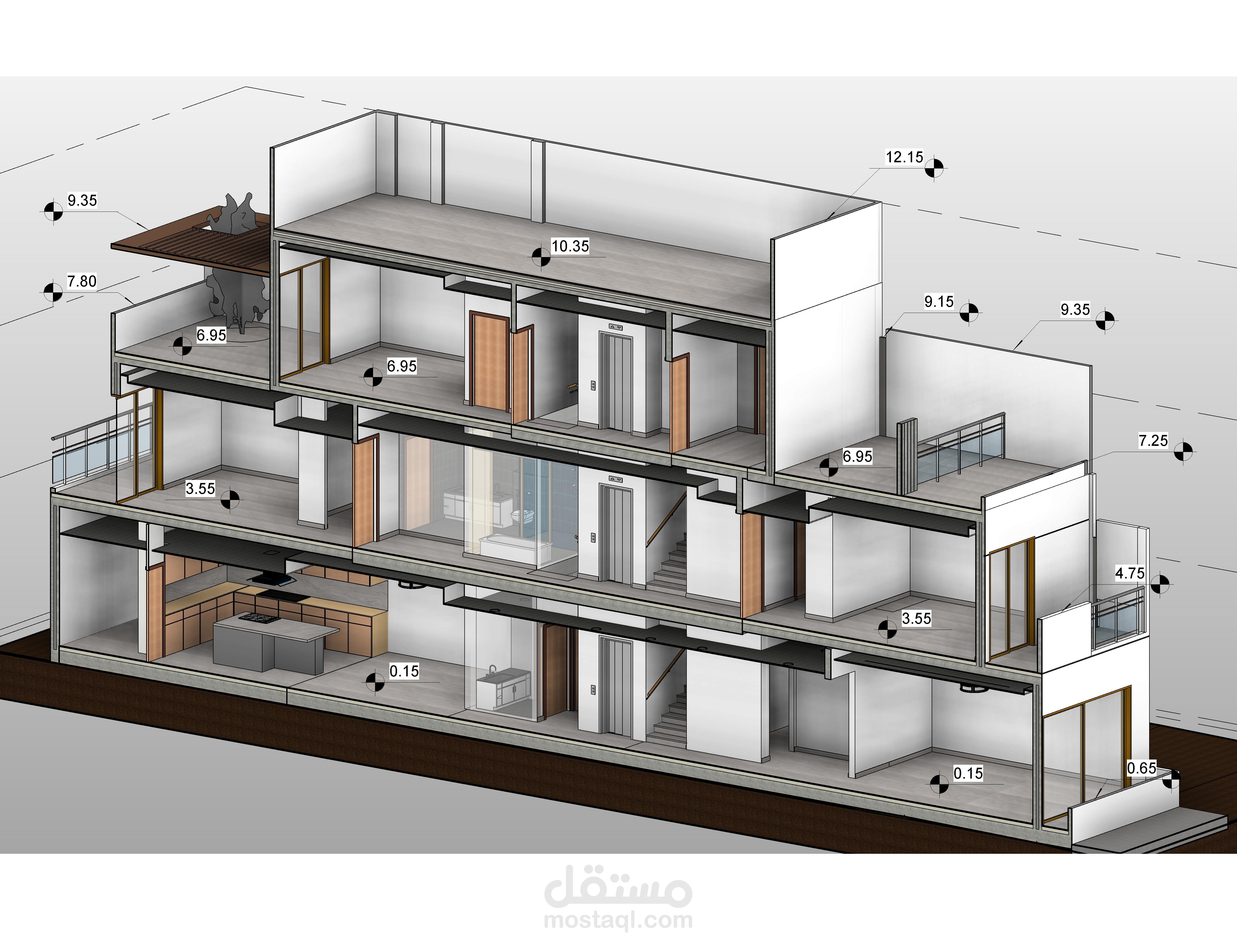 عمل مخططات تنفيذية ونمذجة بأستخدام برنامج الريفيت لآستخراج كافة المخططات والتفاصيل التنفيذية المطلوبة و عمل حصر دقيق ومنظم لكافة خامات المشروع