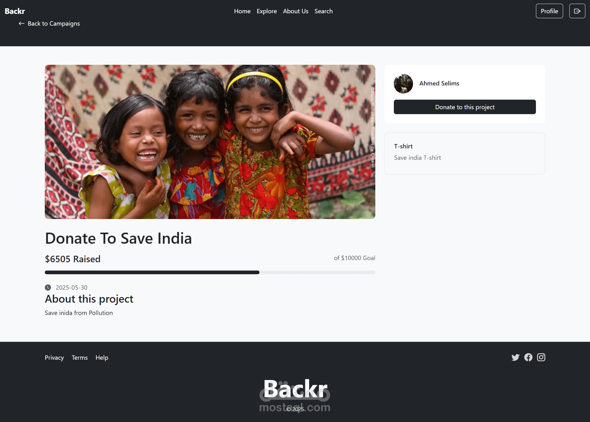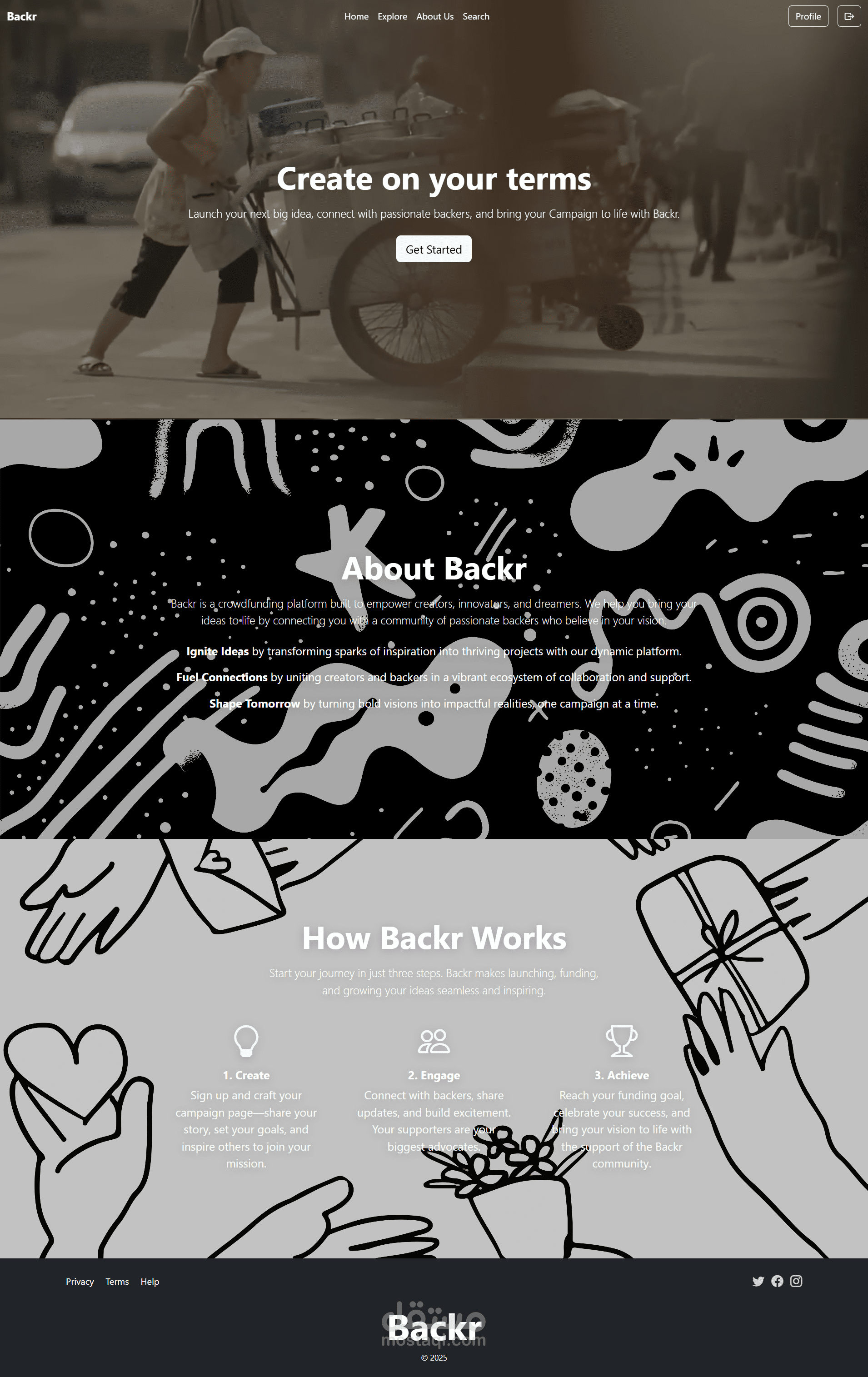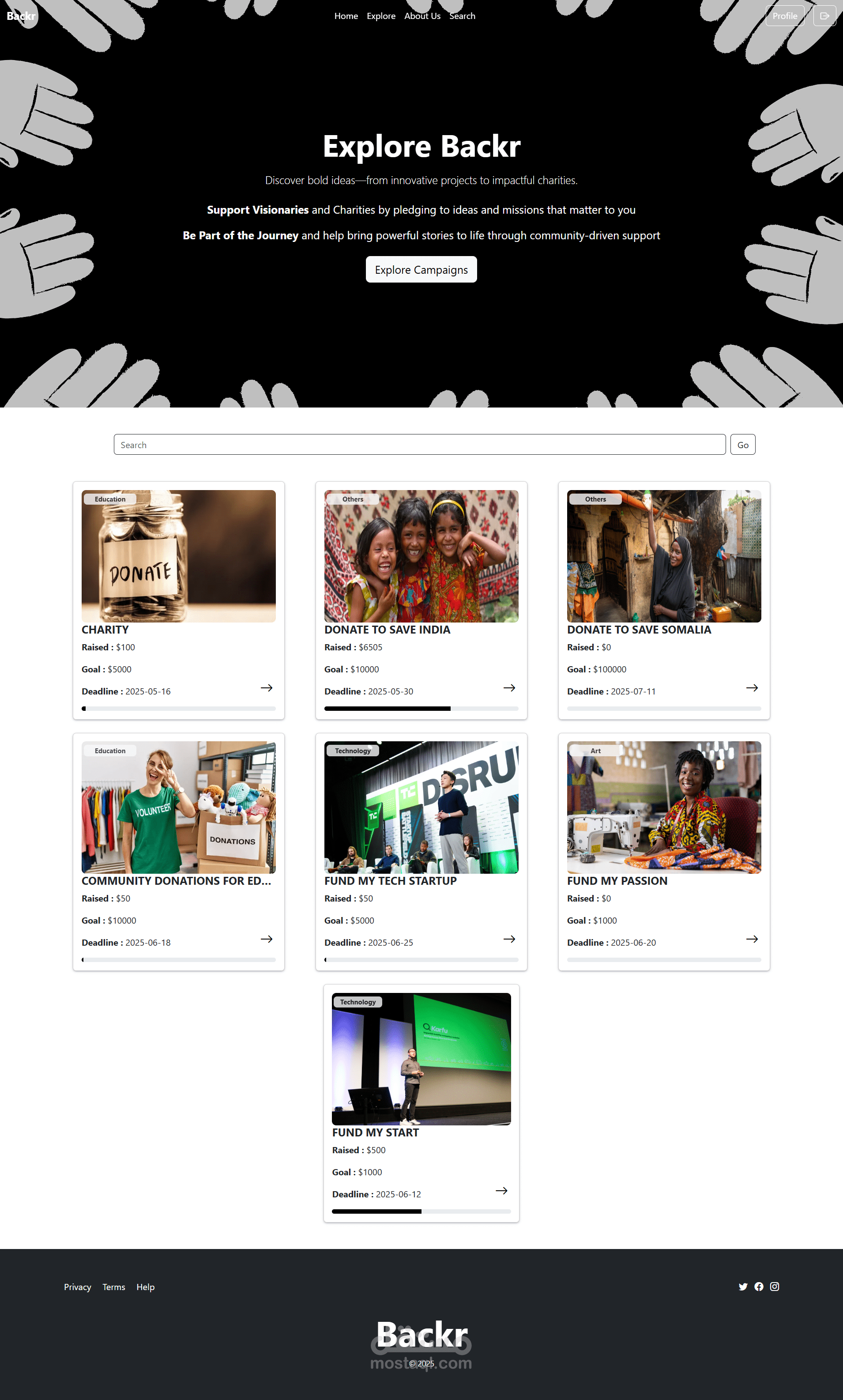 Backr هو تطبيق ويب مبتكر للتمويل الجماعي، يهدف إلى ربط المبدعين ورواد الأعمال والداعمين في مجتمع واحد. يتيح لك الموقع إنشاء حملات تمويل بسهولة، مع إمكانية تخصيص التصميم وإضافة صور وقصص مؤثرة لجذب الداعمين وتحقيق أهدافك.
