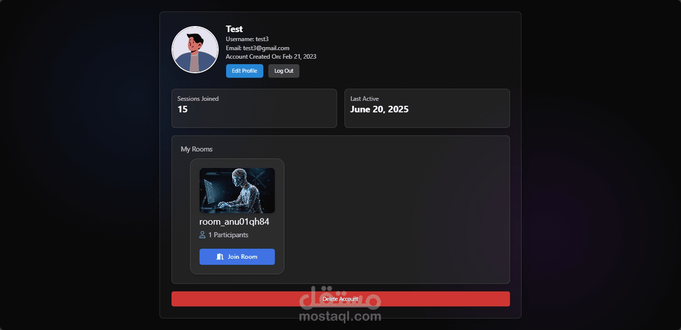 لوحة تحكم تفاعلية لإدارة الجلسات والغرف