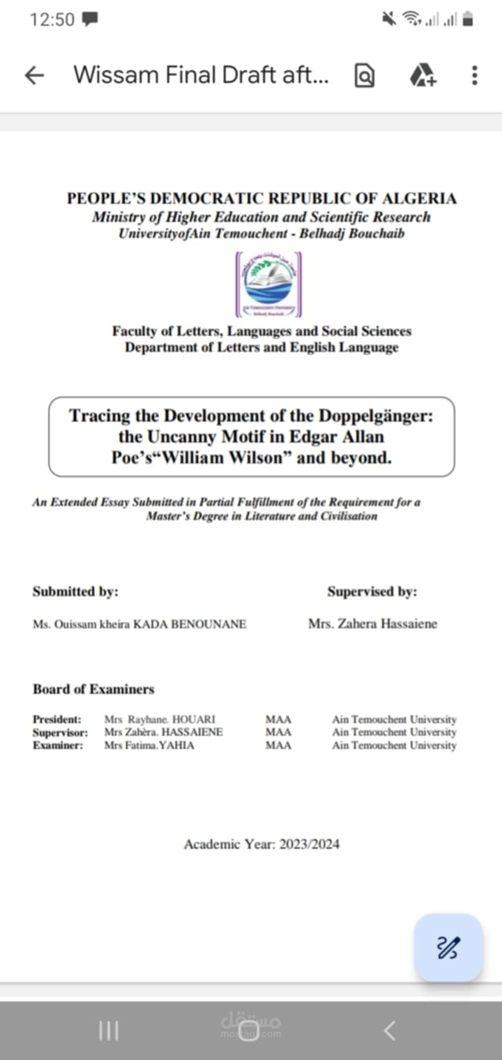 This is my recent work, a thesis about a gothic novel. Thiss work is totally new by me 100% original. Talks about an uncanny things that was famous for a long time " the doppelganger " I traced its development from its birth until nowadays.