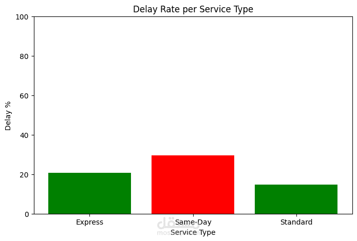 مشروع تحليل بيانات شركة شحن بهدف تقييم وتحسين كفاءة خدمة التوصيل في نفس اليوم (Same-Day Delivery).