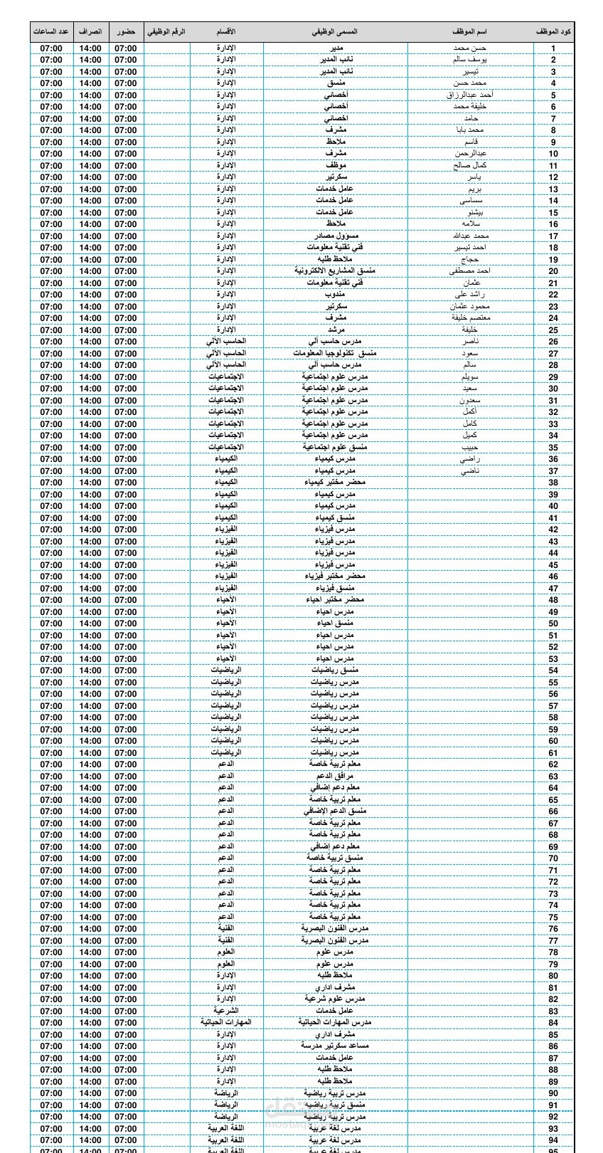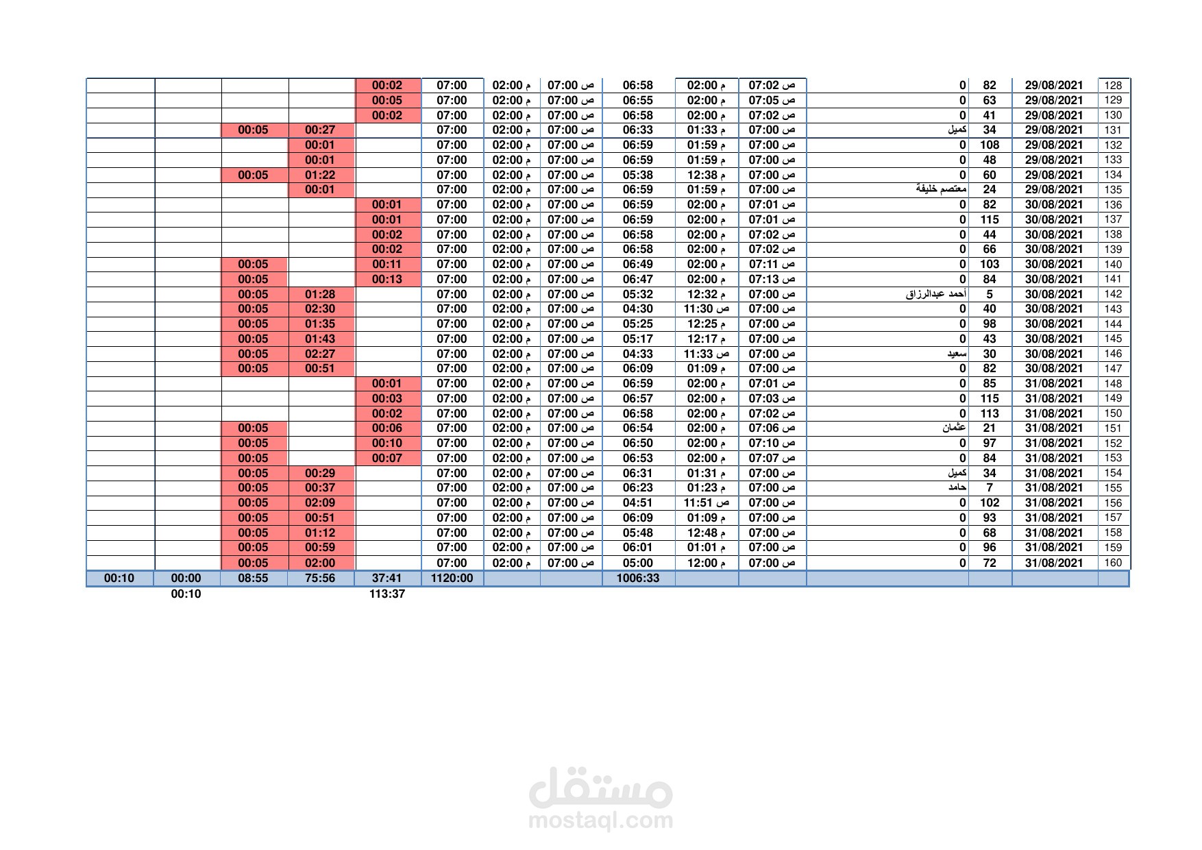 شيت اكسيل لحساب عدد ساعات العمل لكل موظف من ساعات العمل المحدد تبع بيانات مكود لكل موظف