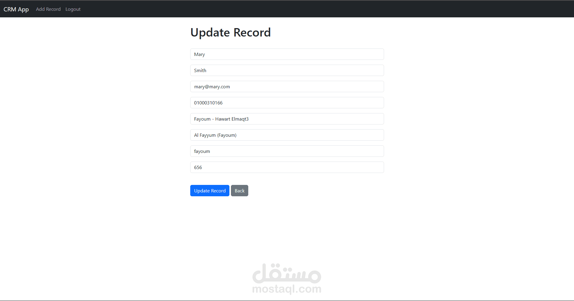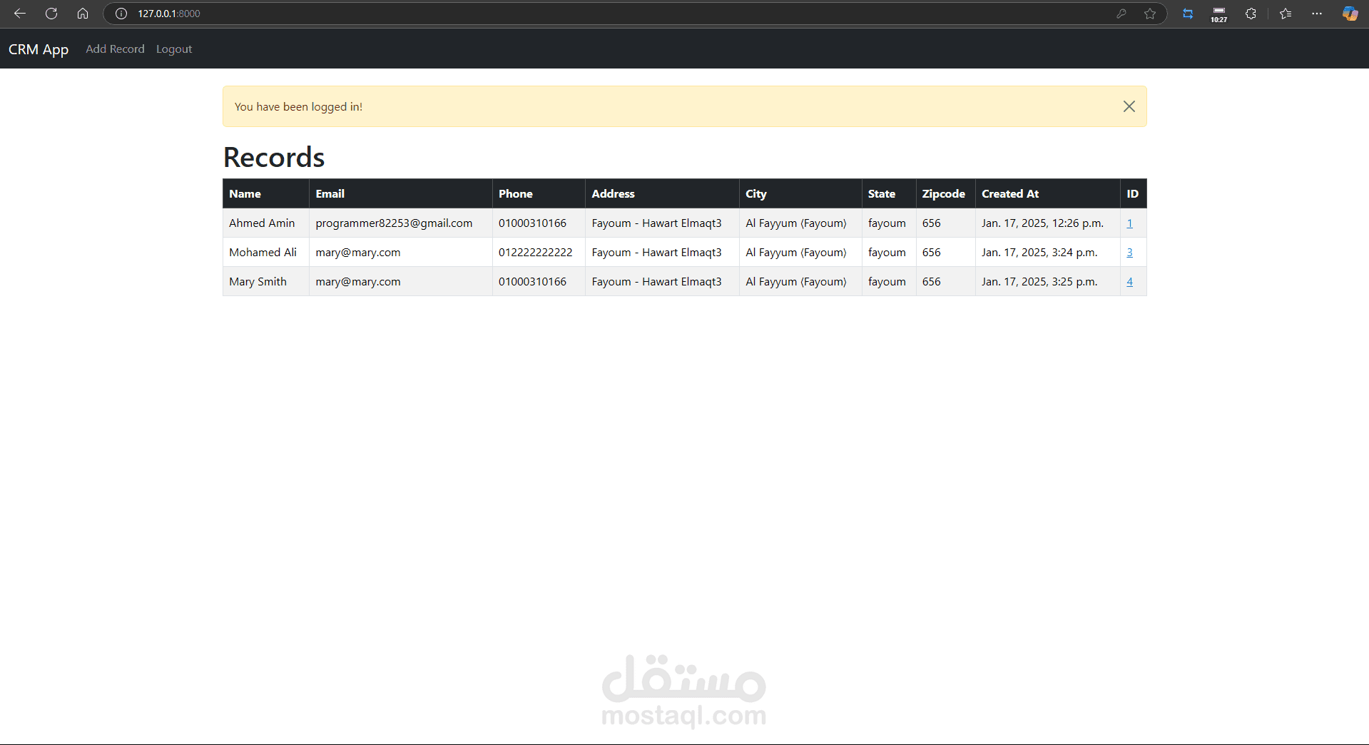 نظام إدارة علاقات العملاء (CRM) مخصص للشركات الصغيرة والمتوسطة. يتيح للمستخدمين إدارة قاعدة بيانات العملاء، تتبع المهام، وتوزيع الأدوار والصلاحيات. يعتمد على جلسات تسجيل الدخول ويتميز بواجهة بسيطة وسهلة الاستخدام.