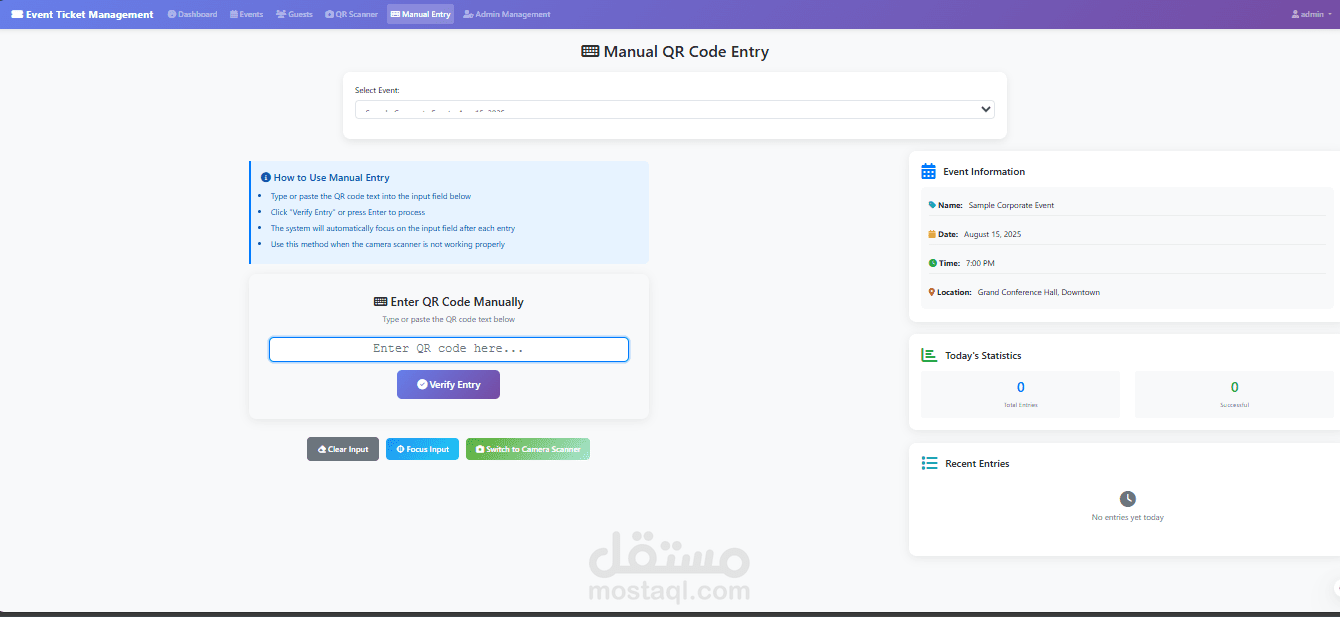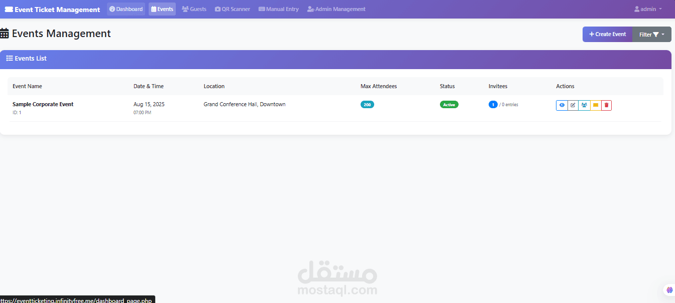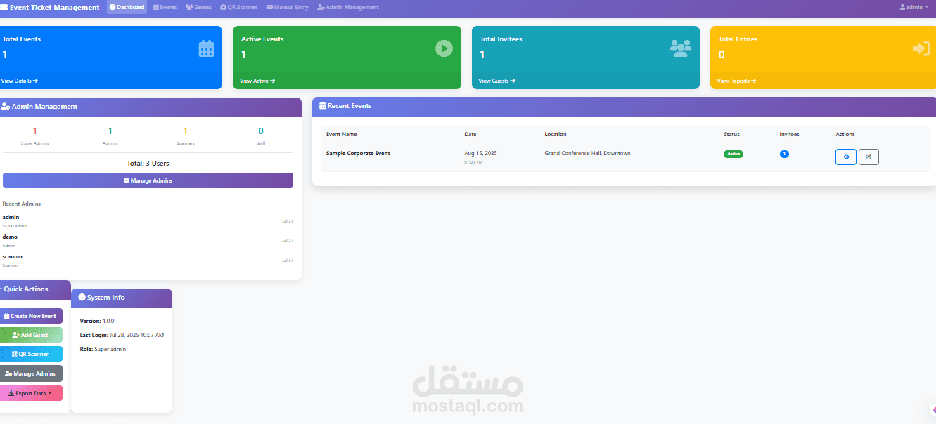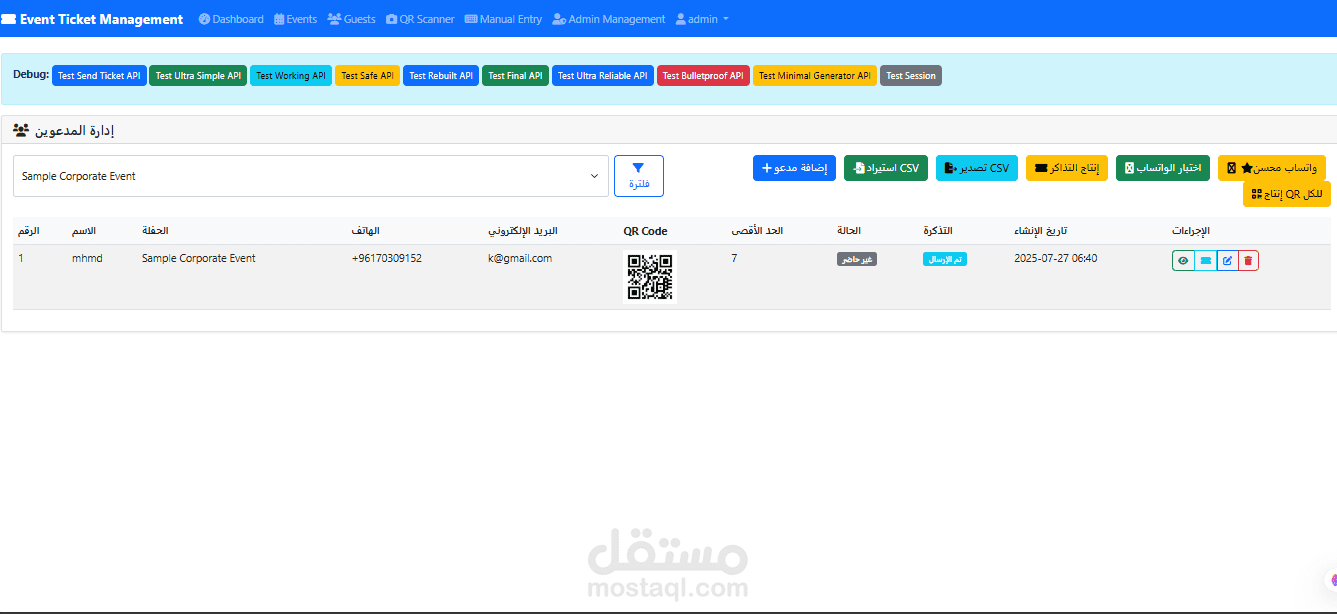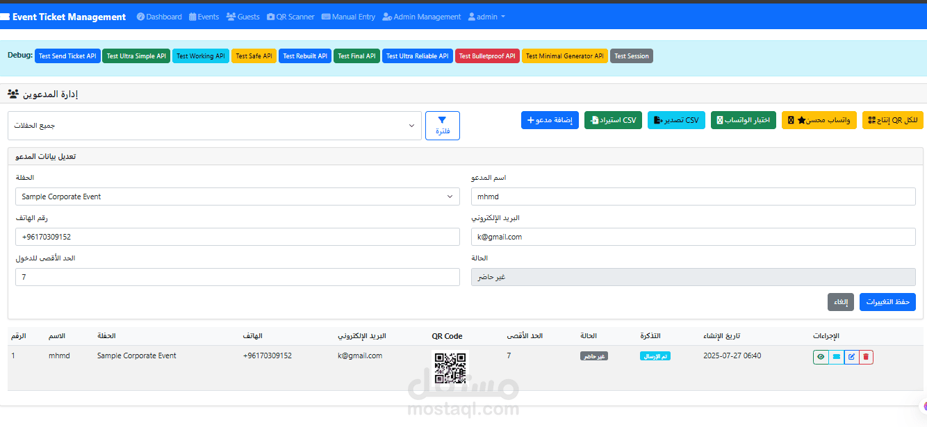إدارة كاملة للفعاليات والضيوف مع إمكانية البحث والتعديل.