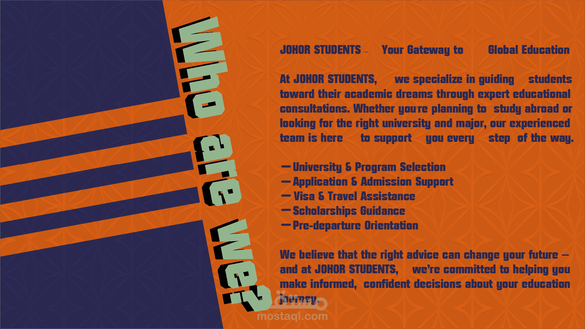 Overall, Johor Students’ brand design is visually impactful, modern, and professional—ideal for an organization dedicated to student guidance, consulting, and education abroad.