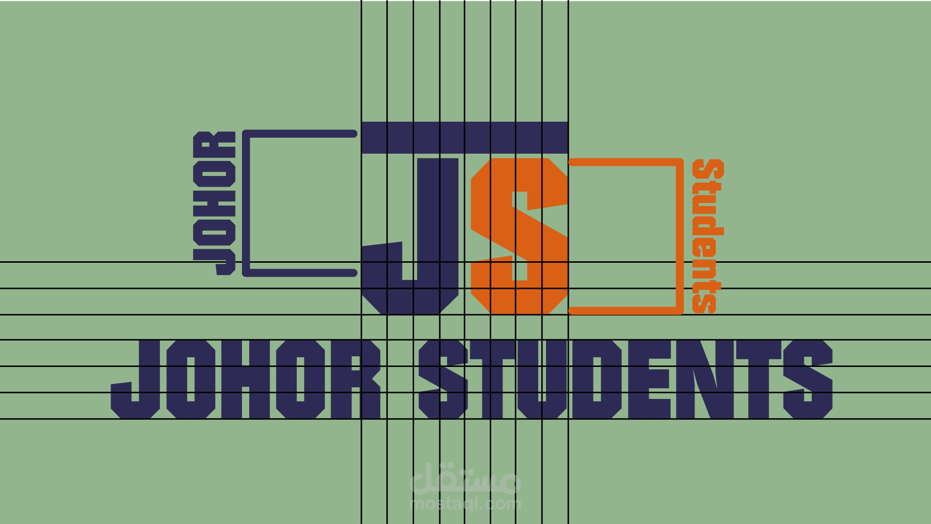 The custom typography is strong and geometric, reinforcing the brand’s commitment to clarity, guidance, and academic support. The extended logotype “JOHOR STUDENTS” beneath the monogram maintains the same robust, angular typeface, enhancing recognition and consistency across applications.