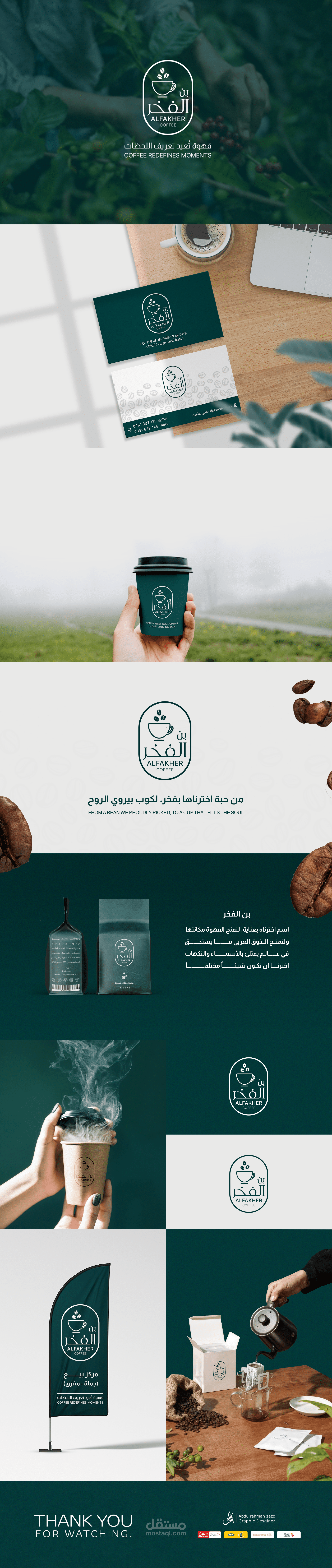 هوية بصرية تجارية كاملة لبن الفخر - متخصص ببيع جميع أنواع القهوة العربية