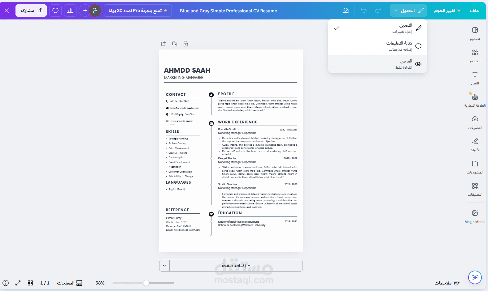 تصميم سيرة ذاتية احترافية – عربي وإنجليزي
