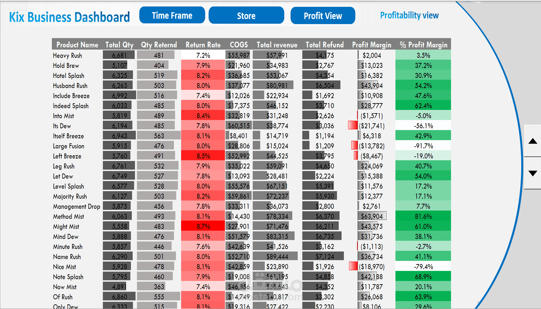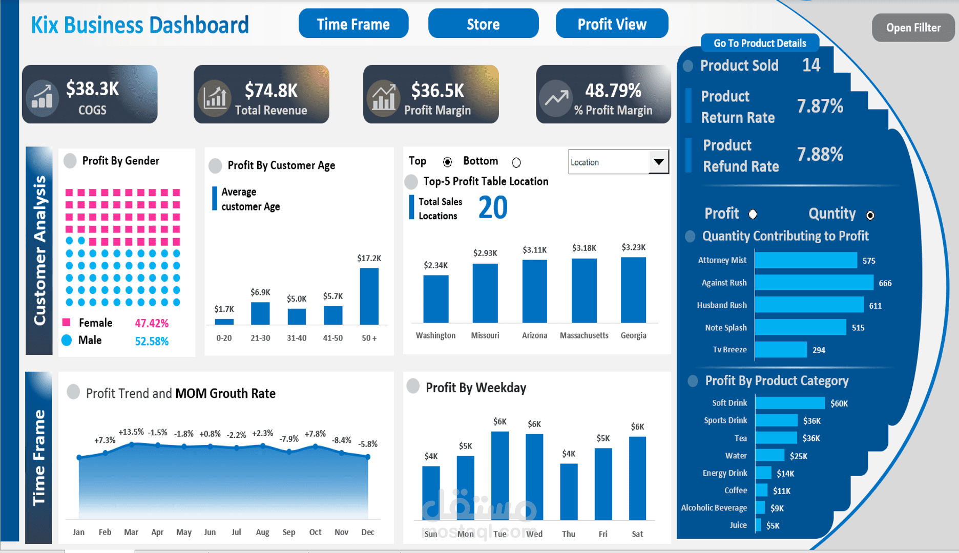 الرسوم البيانية تشمل: تحليل المبيعات، الأرباح، المنتجات، الفروع، العملاء، الاتجاهات الزمنية، والمزيد