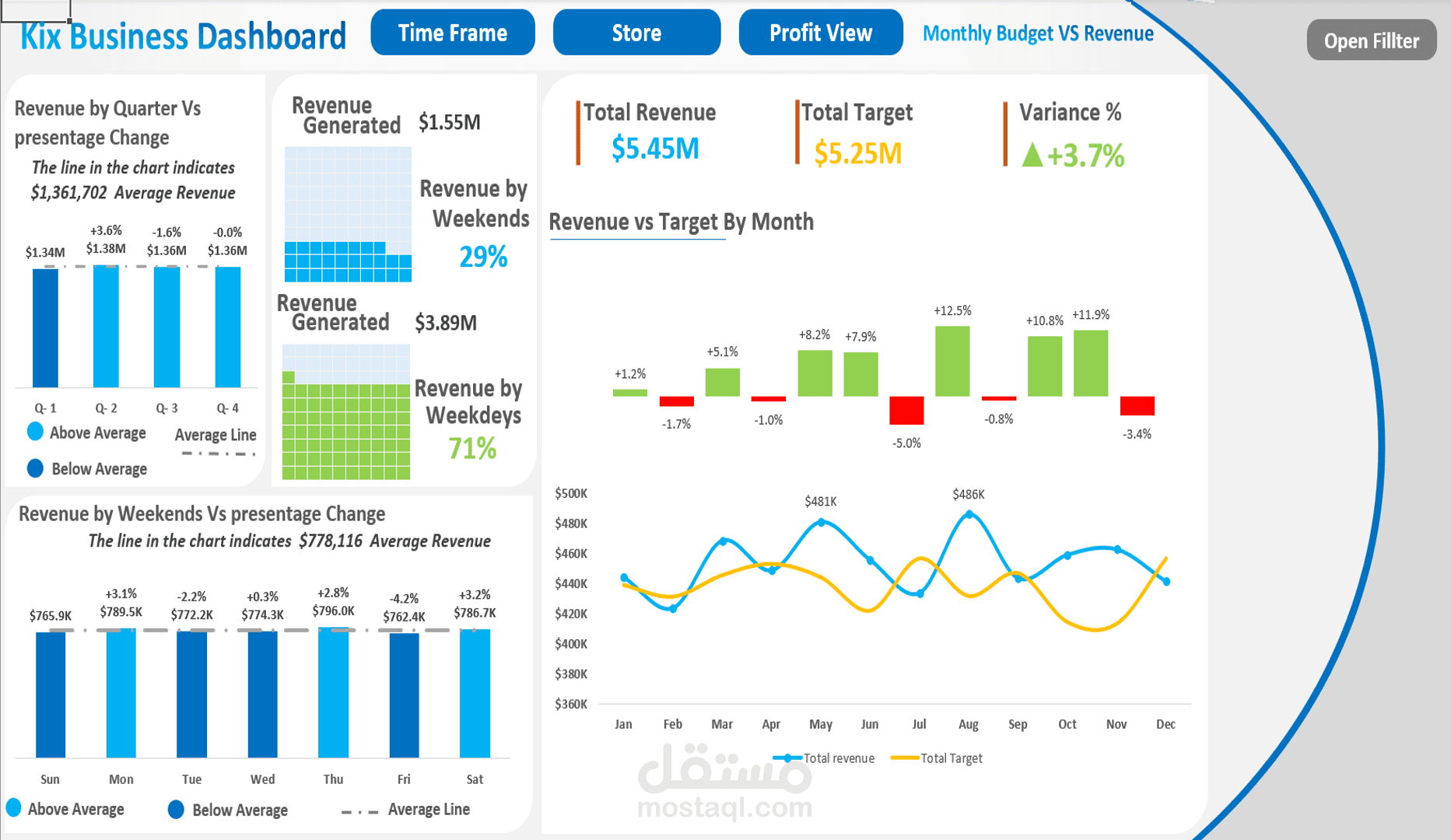 شيت Dashboard تفاعلي يحتوي على 6 رسوم بيانية ديناميكية