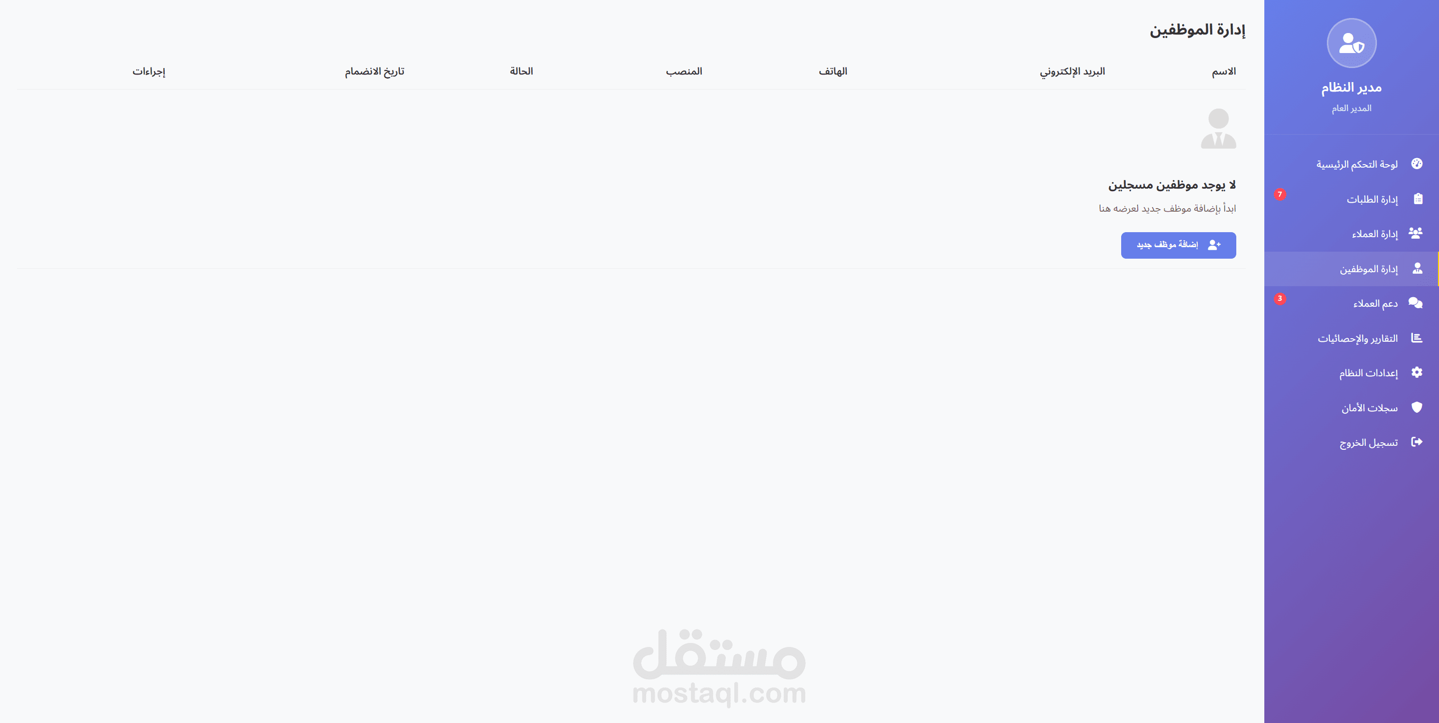 نظام الموظفين مع صلاحيات مخصصة لكل دور.