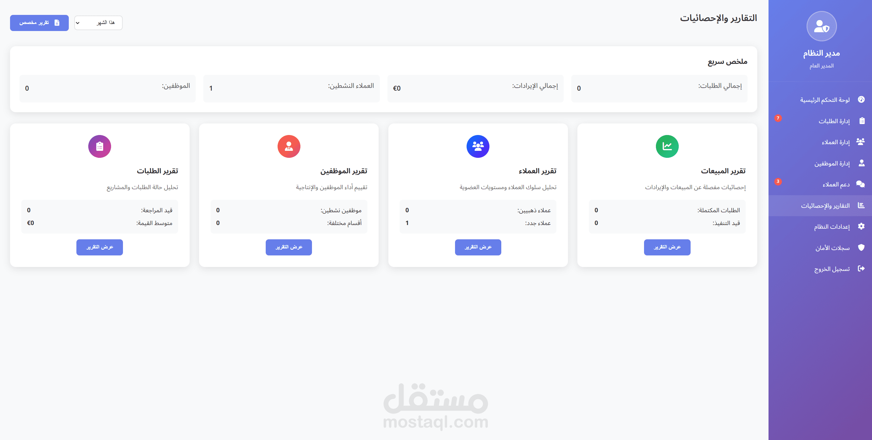 نظام تقارير مفصل (مبيعات – عملاء – إحصائيات).