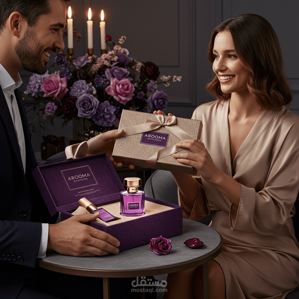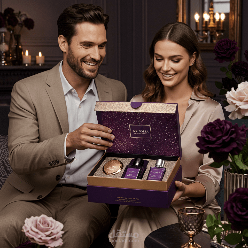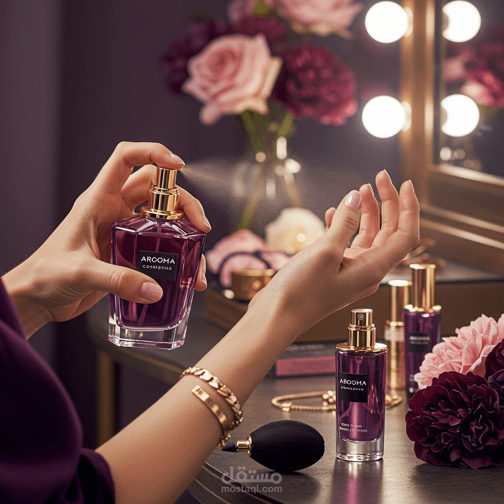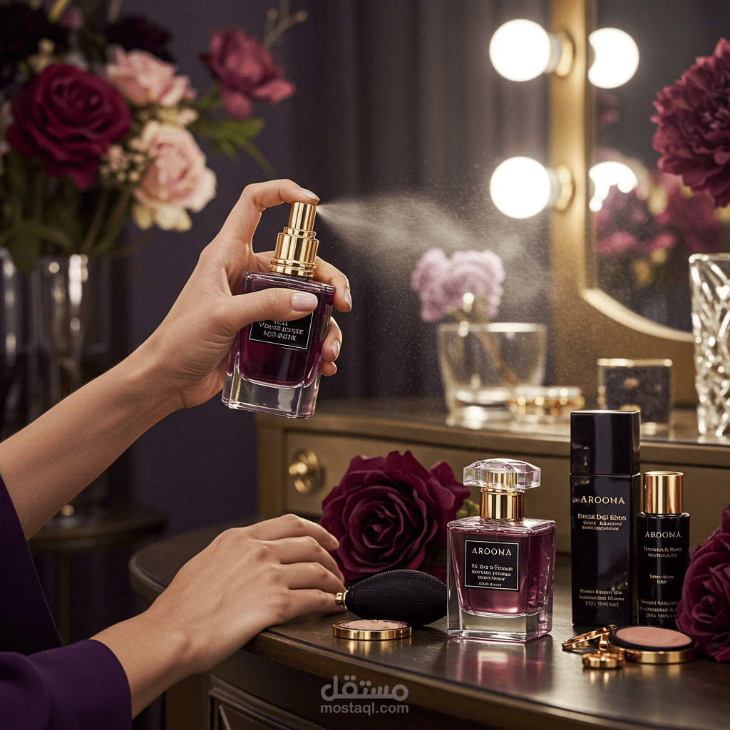 تصميم صور واقعية أو فنية لمنتجات "Arooma" بأسلوب أنيق وعصري.