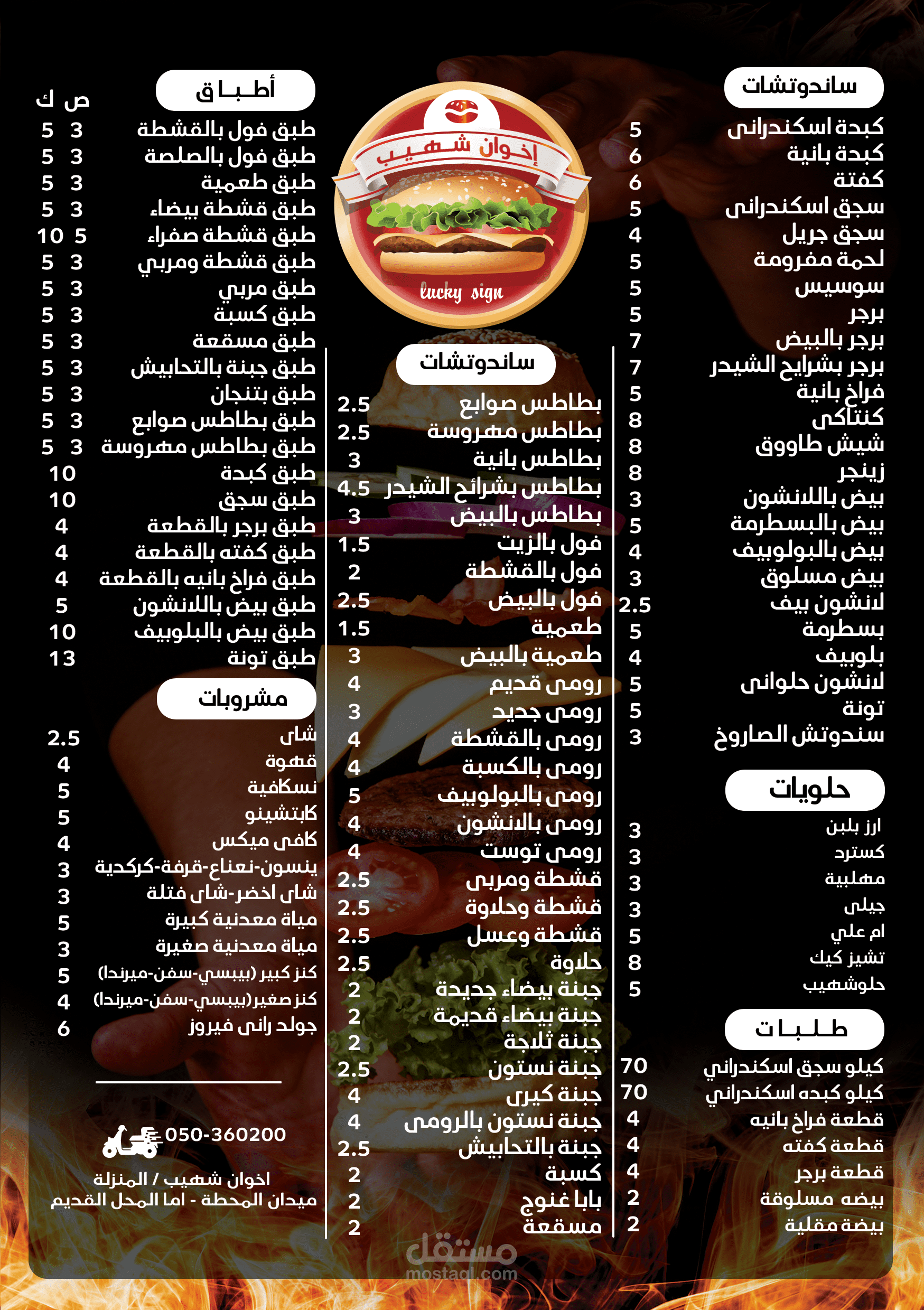 مينيو اخوان شهيب لعرض المنتجات الخاصه بهم