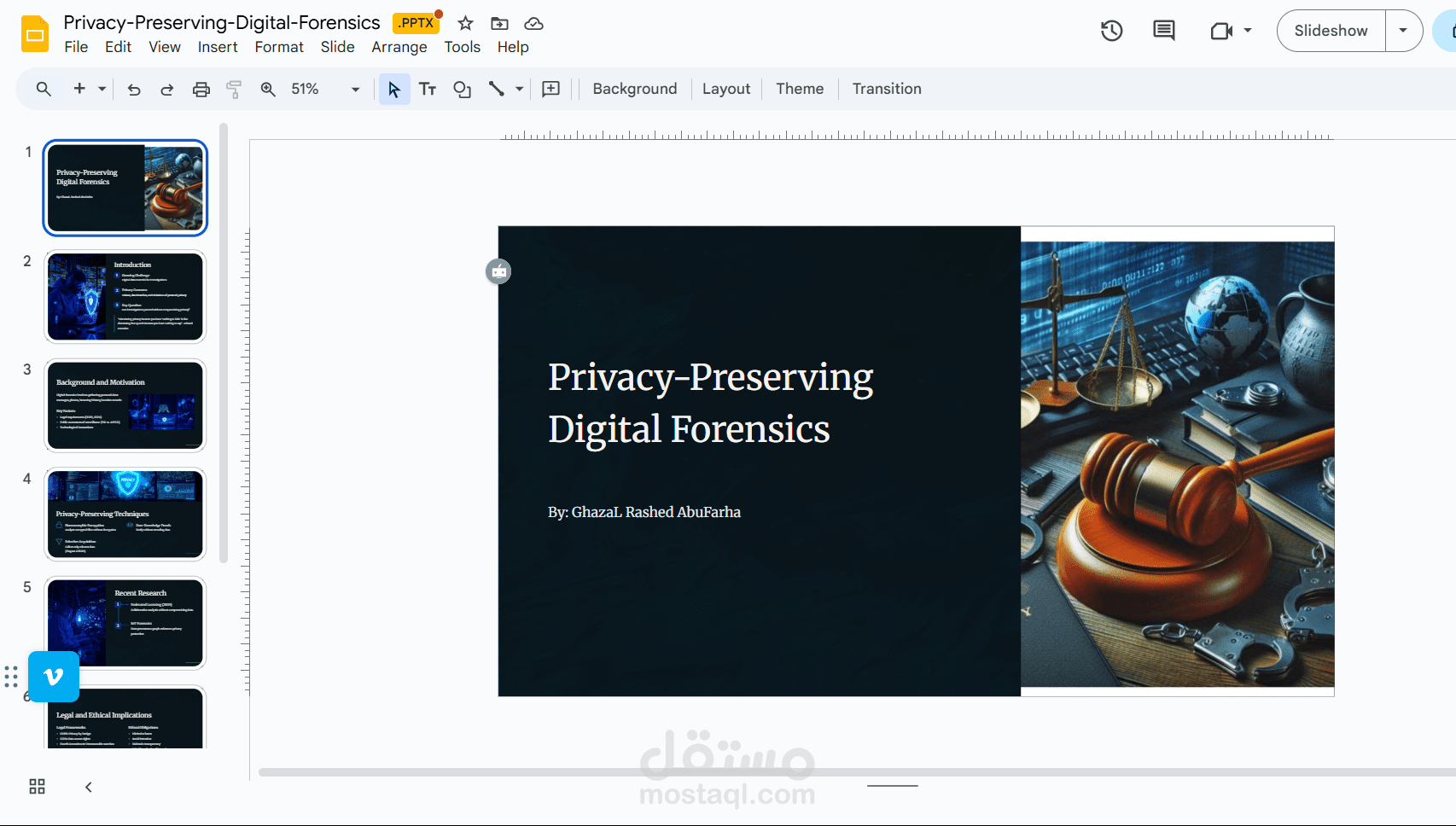 مجموعة من العروض التقديمية المميزة باستخدام منصات متنوعة مثل Google Slides وغيرها من المنصات تتضمن انيميشن وعرض واضح أحرص على أن تتضمن العروض التقديمية محتوى بصري ملائمًا وفعّالًا يعكس مضمون العرض ويُضفي عليه حيوية.