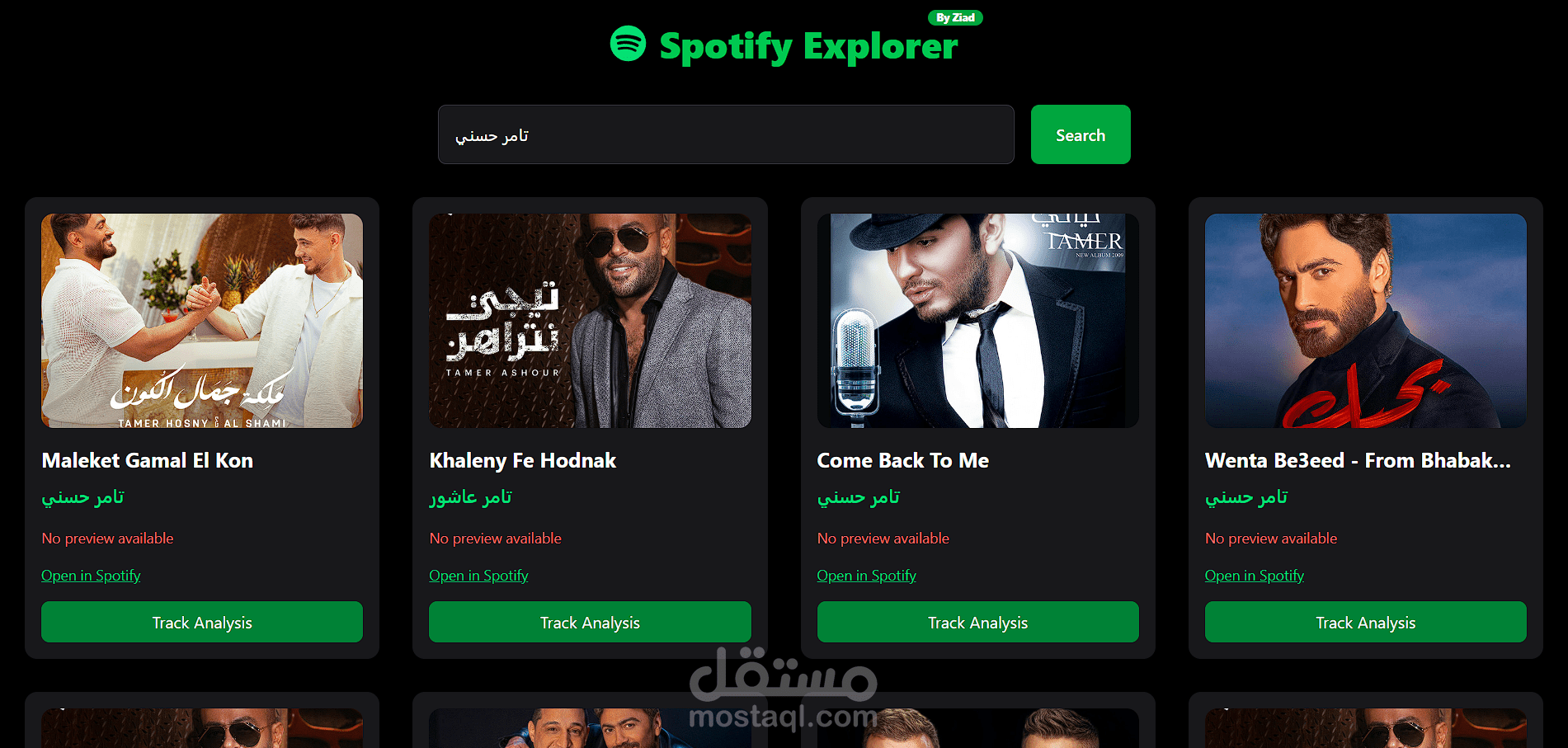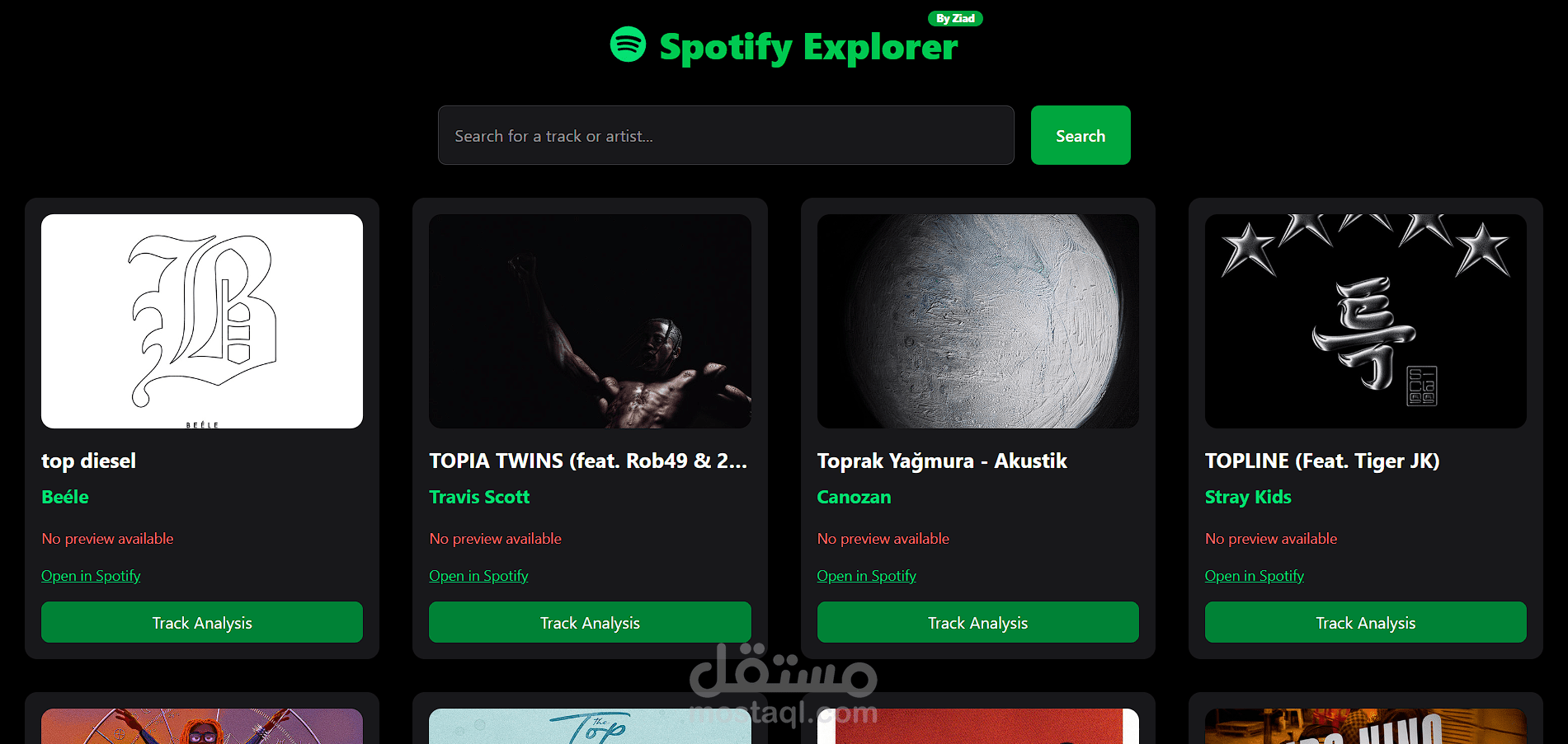 Developed a clean and responsive Spotify-inspired music streaming interface using Next.js, React.js, and Tailwind CSS. The app features a powerful search functionality that allows users to easily find and access artist pages, mimicking the browsing experience of a real music platform.