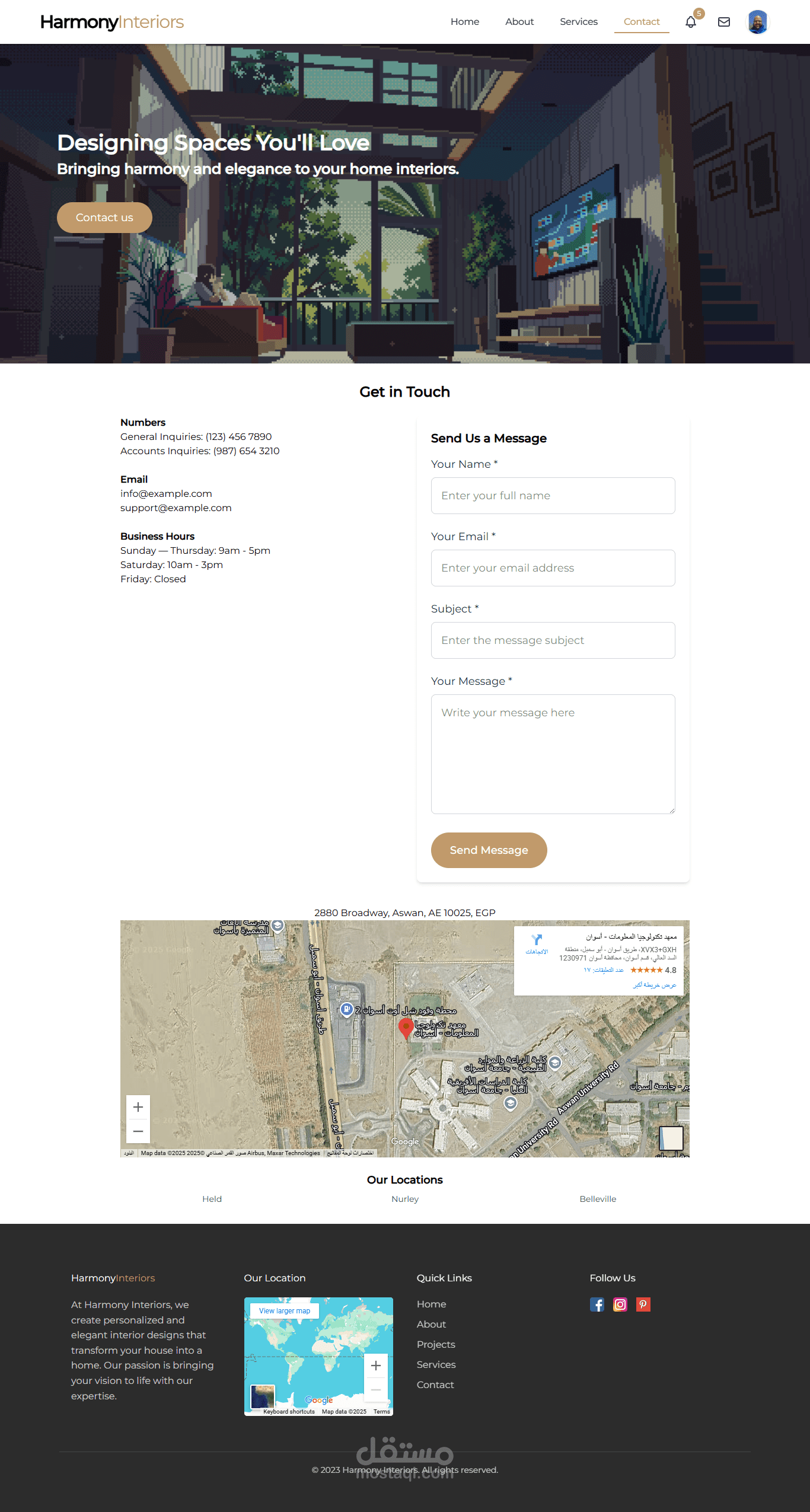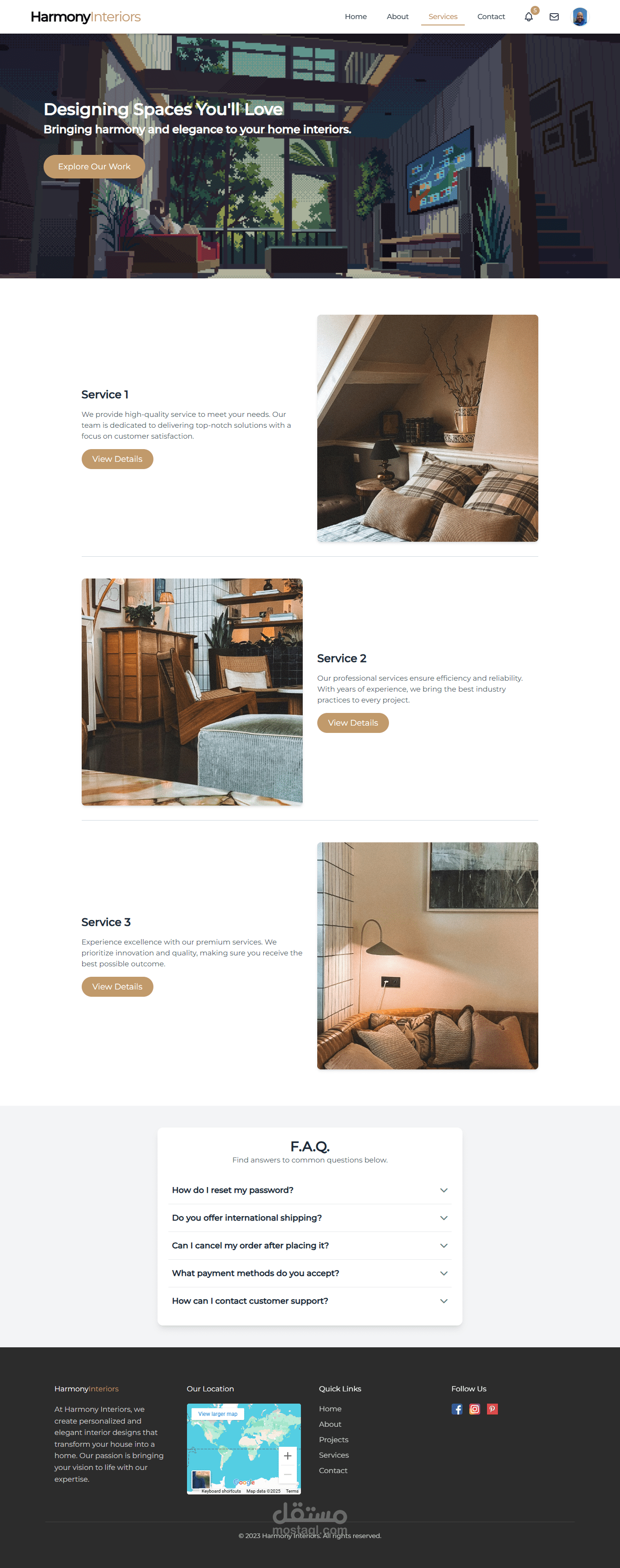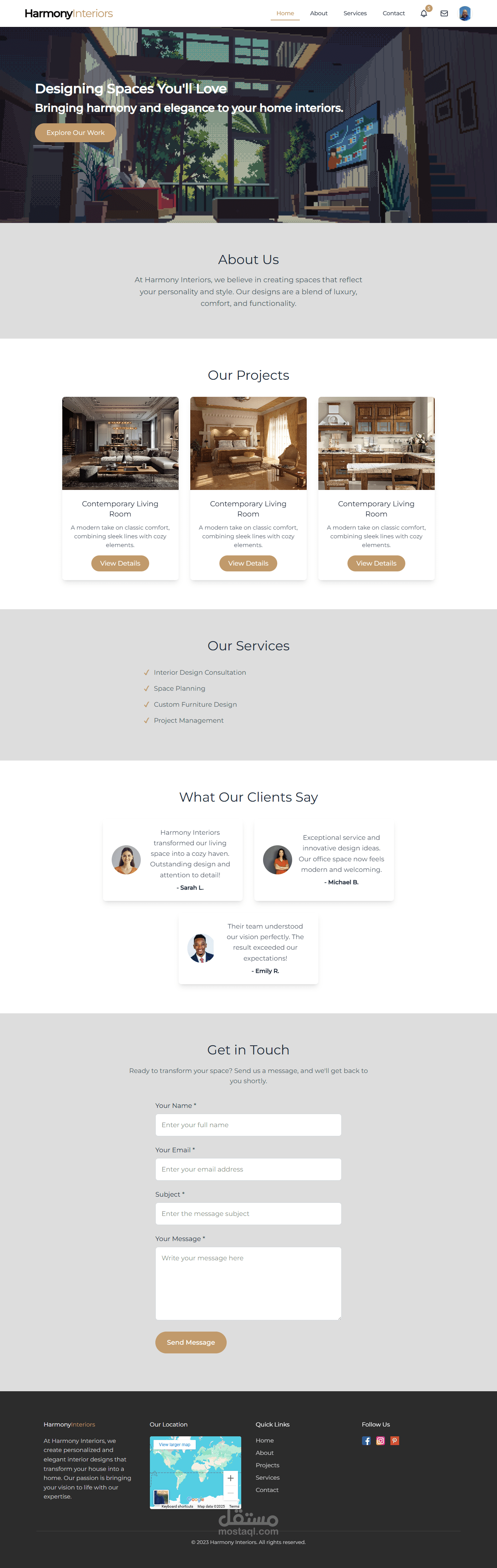 قمت بتطوير موقع ويب تفاعلي مخصص لمصممي الديكور الداخلي، يتيح لهم عرض أعمالهم باستخدام تقنيات النمذجة ثلاثية الأبعاد (3D Modeling). يوفر الموقع تجربة مستخدم سلسة وجذابة، حيث يمكن للعملاء تصفح الأعمال المنفذة، استكشاف تصاميم المساحات الداخلية بصيغة ثلاثية الأبعاد، والتواصل مباشرة مع المصممين. تم تصميم الموقع ليكون متجاوبًا بالكامل، مما يضمن تجربة مثالية على جميع الأجهزة (الهواتف الذكية، الأجهزة اللوحية، وأجهزة الكمبيوتر).