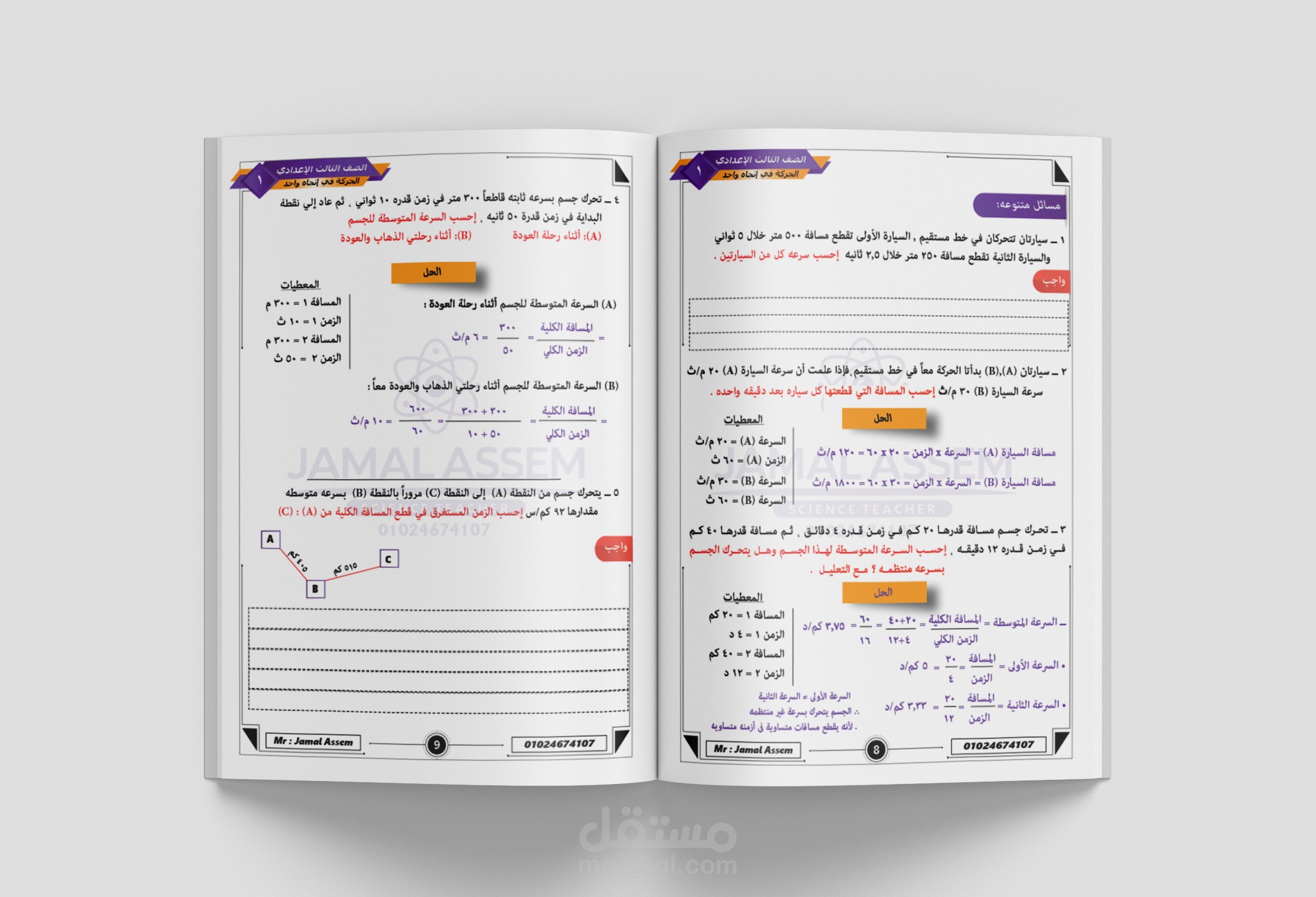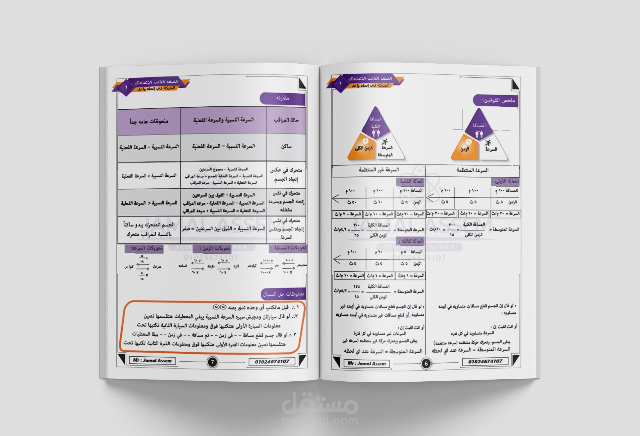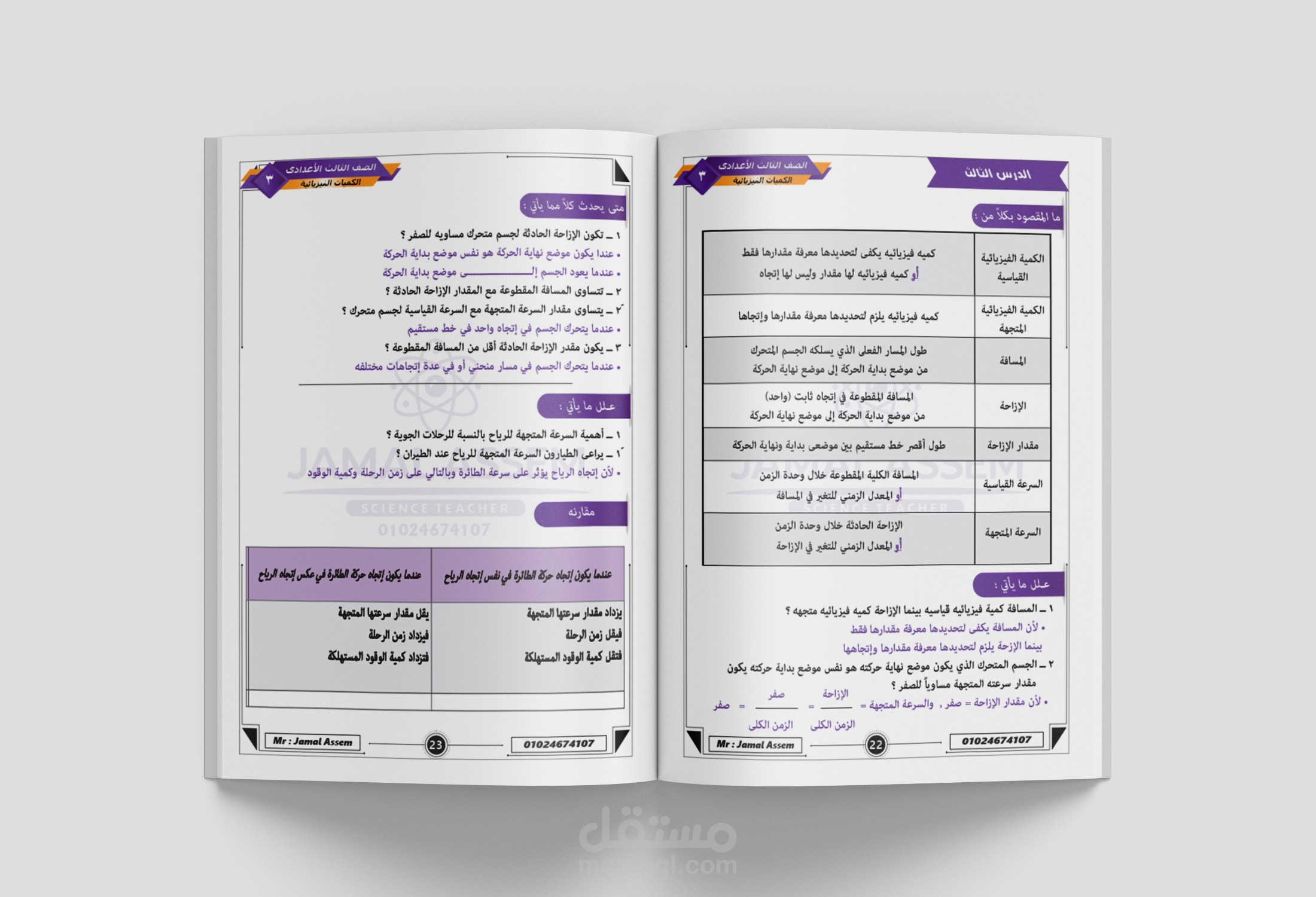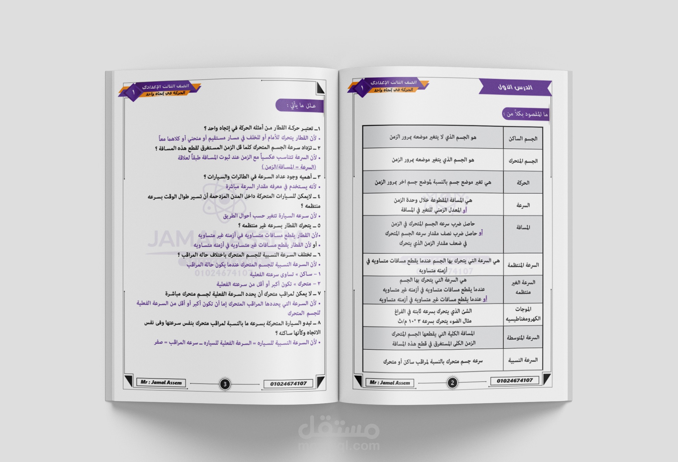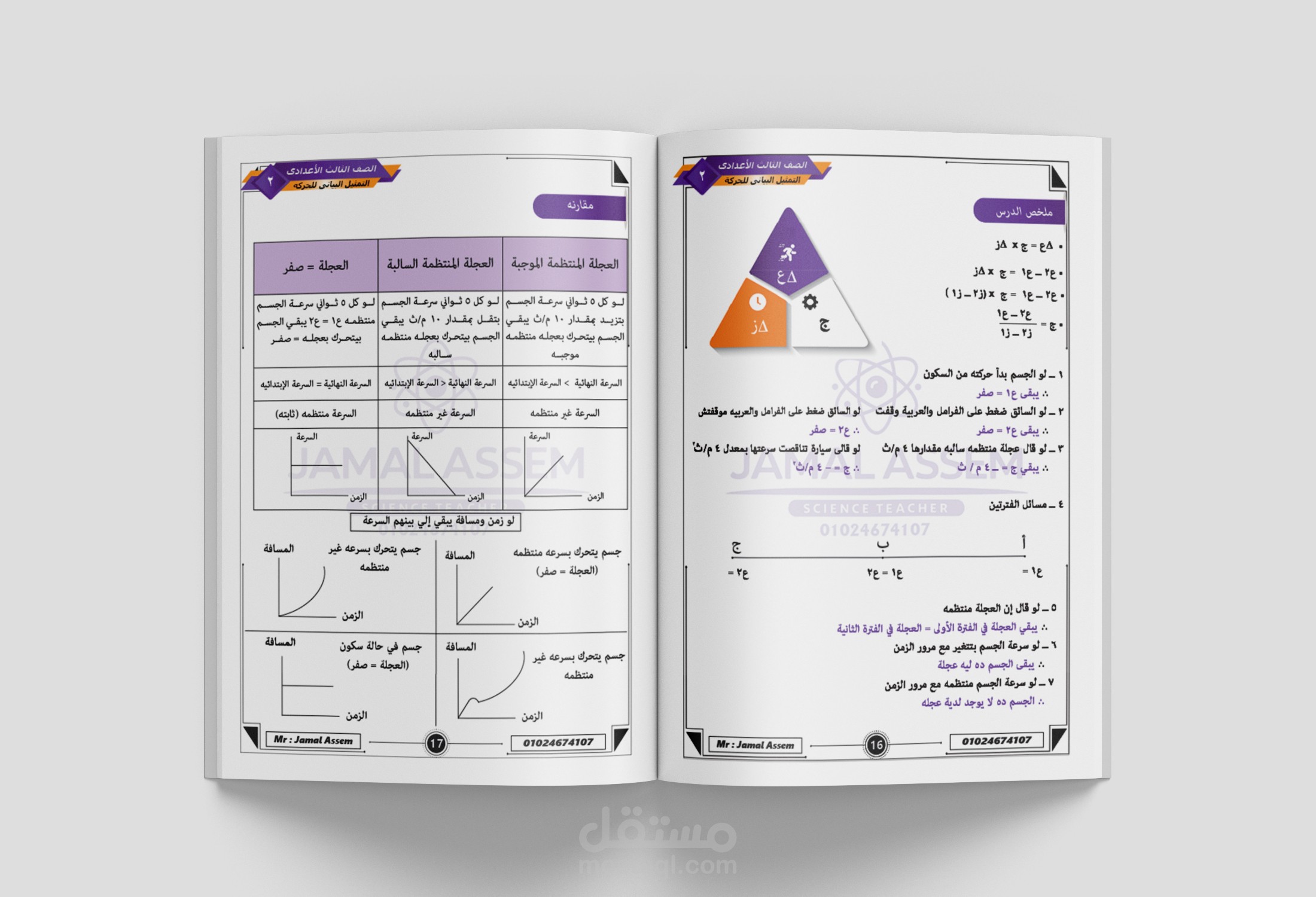 Educational notebook design for 3rd prep science students – Unit 1: Forces and Motion. Includes a custom cover and structured internal layout to enhance readability and learning experience.