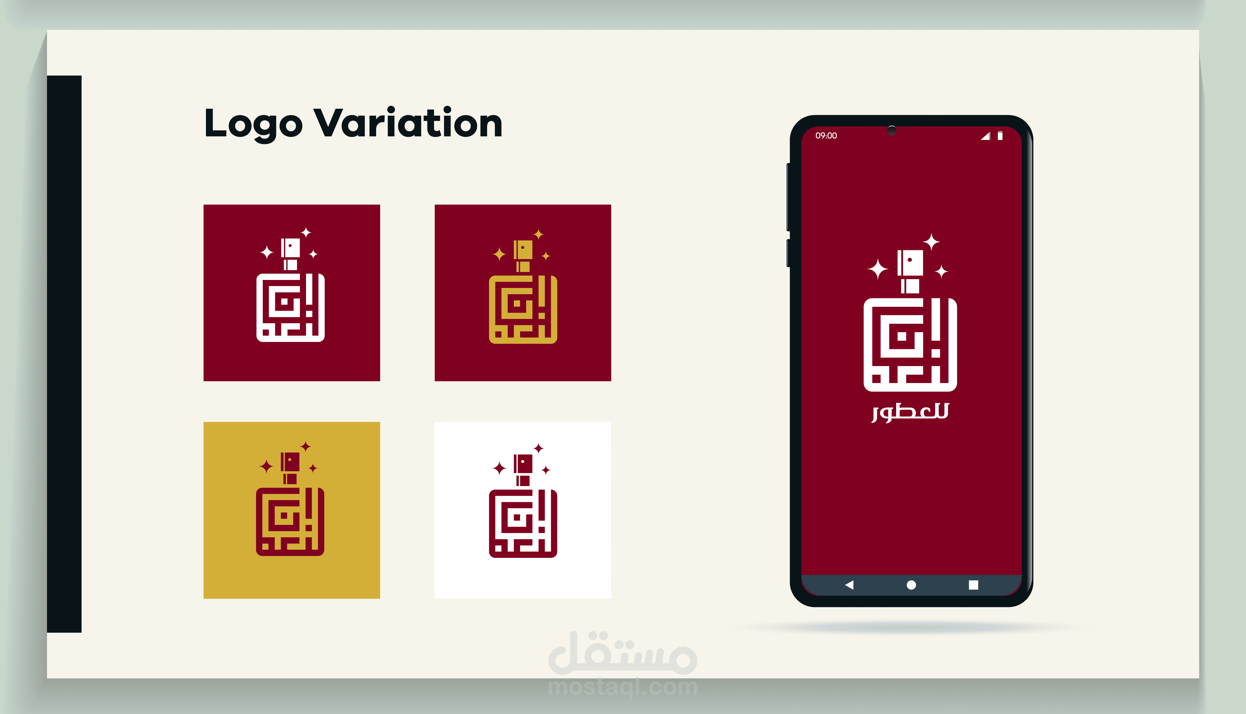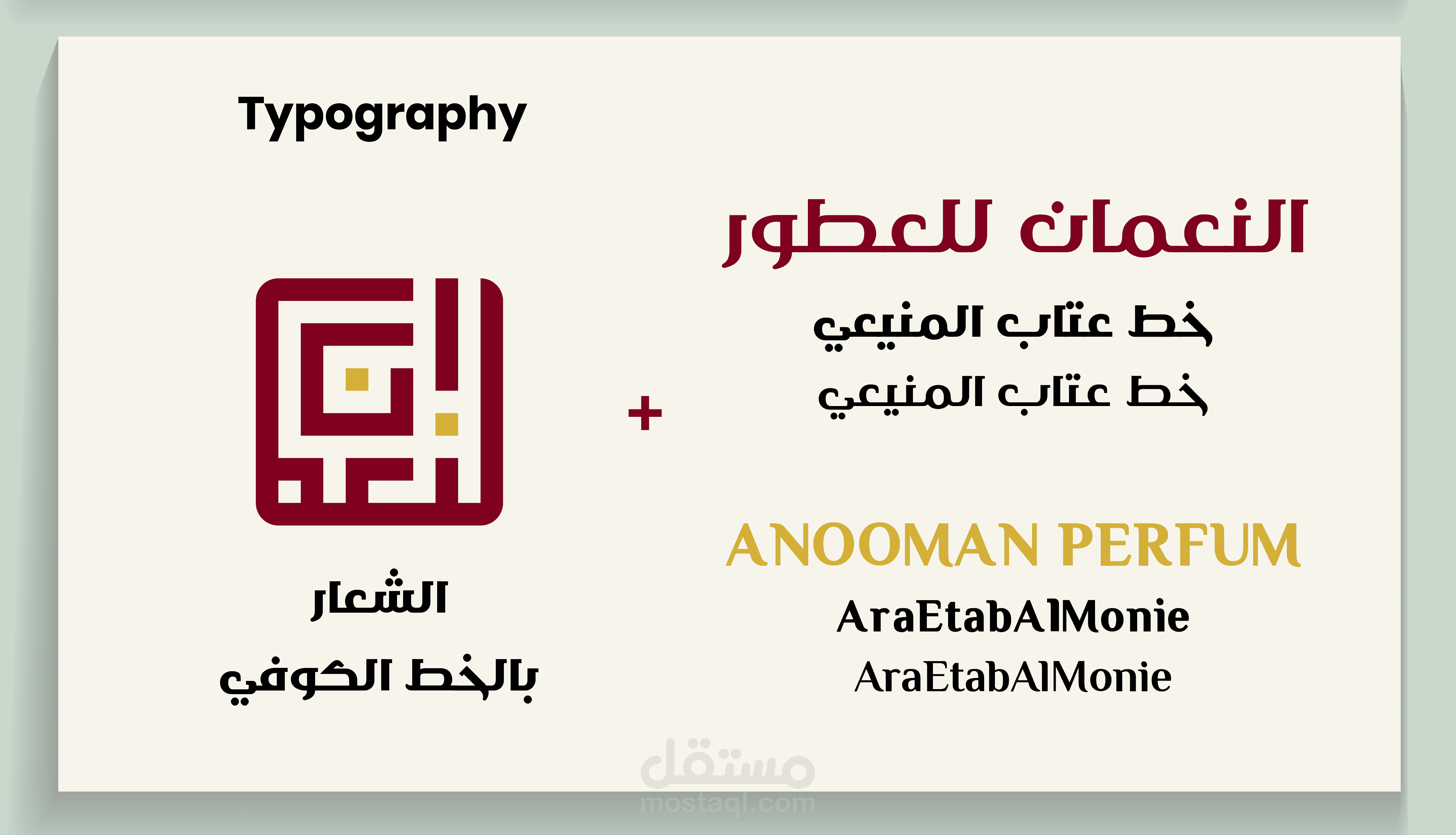 تم استخدام الخط الكوفي على شكل زجاجة عطر