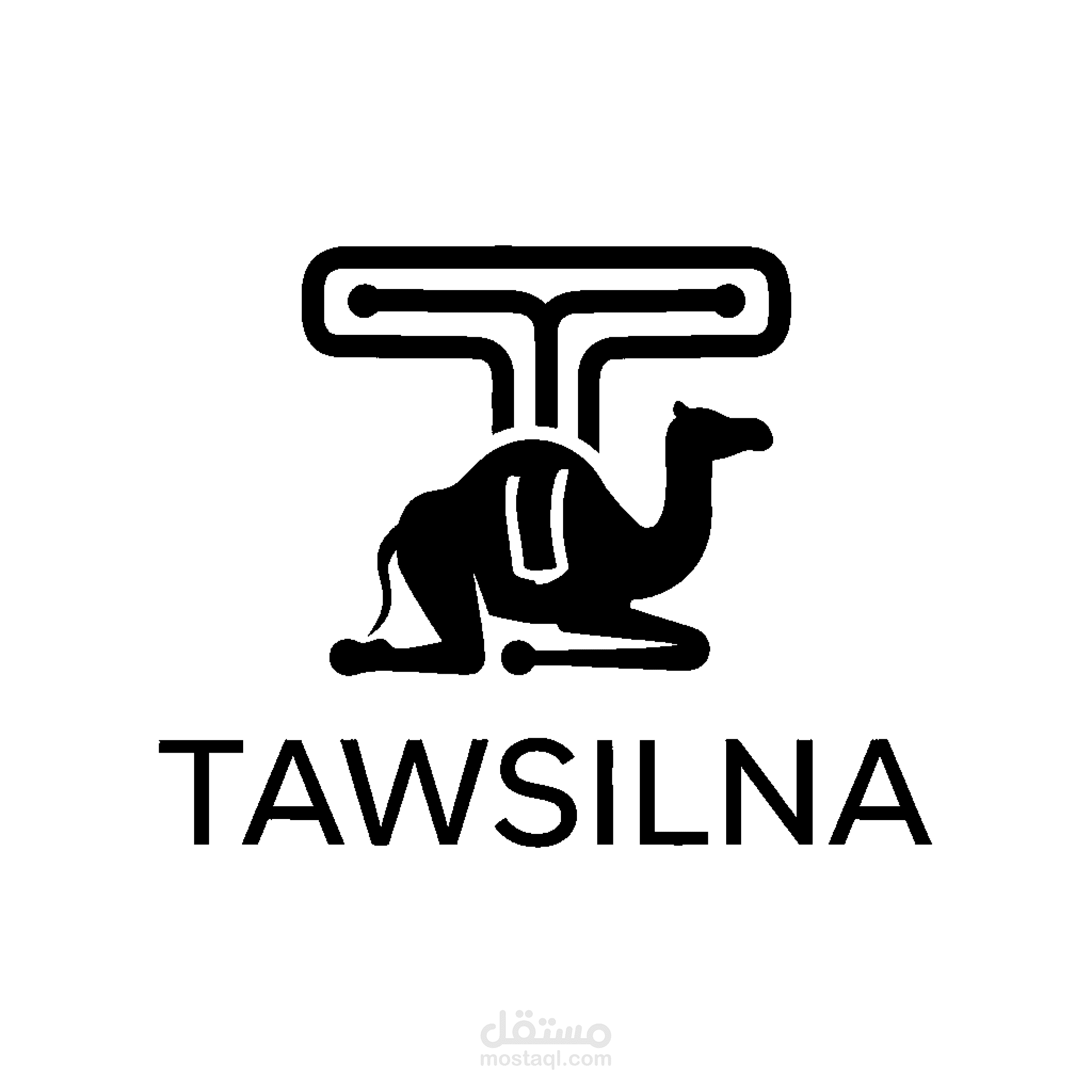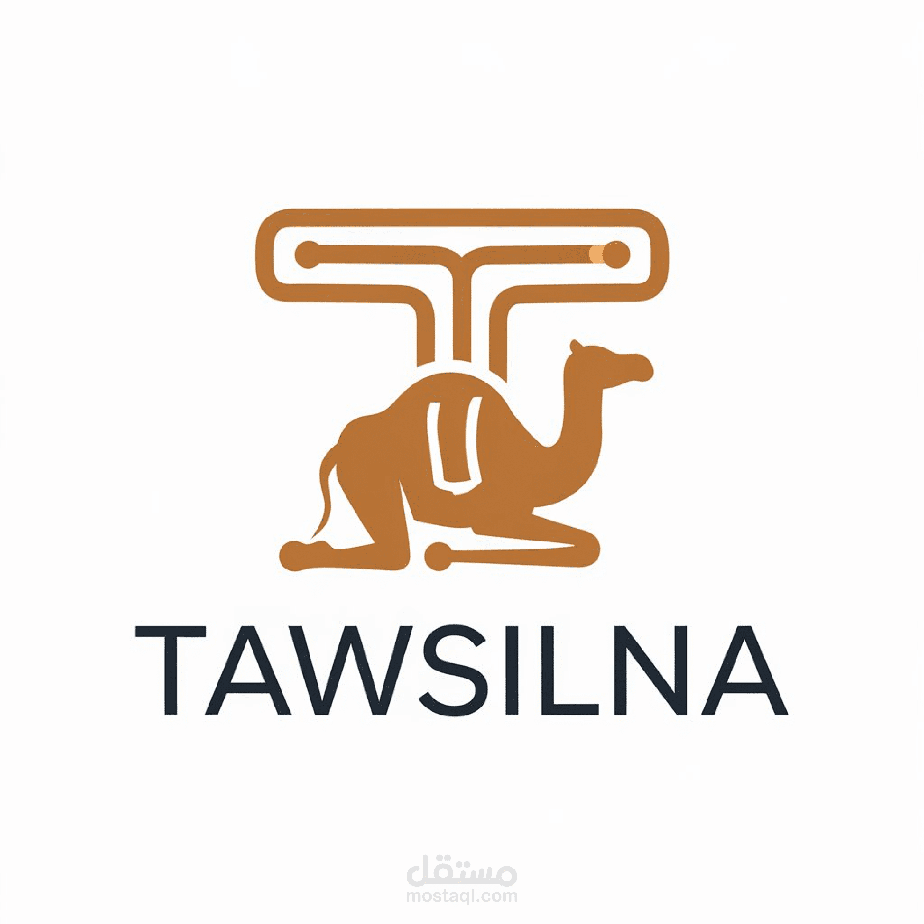 تصميم شعار لعلامة تجارية لوجستية باسم "TAWSILNA"، يجمع بين الحداثة ممثلة في حرف T المبسط كرمز للشبكة أو الطريق، والعراقة عبر دمج جمل كرمز للنقل الصحراوي التقليدي. الشعار يعكس الهوية الثقافية للمنطقة، ويتميز بالبساطة، والوضوح، وسهولة الاستخدام على مختلف الوسائط البصرية.