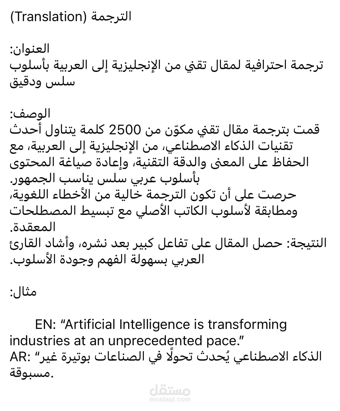 ترجمة العبارات و القصص و المقالات بتدقيق لغوي