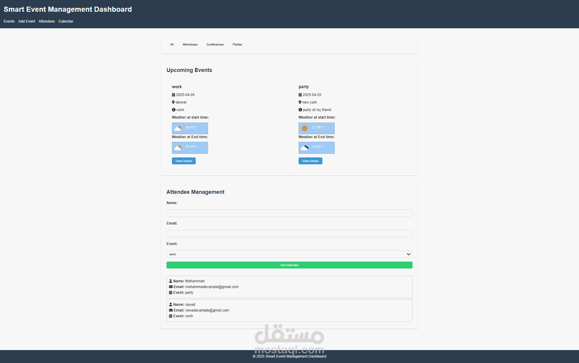 قمت بتصميم وتطوير لوحة تحكم ذكية لإدارة الفعاليات باستخدام HTML، CSS، JavaScript.