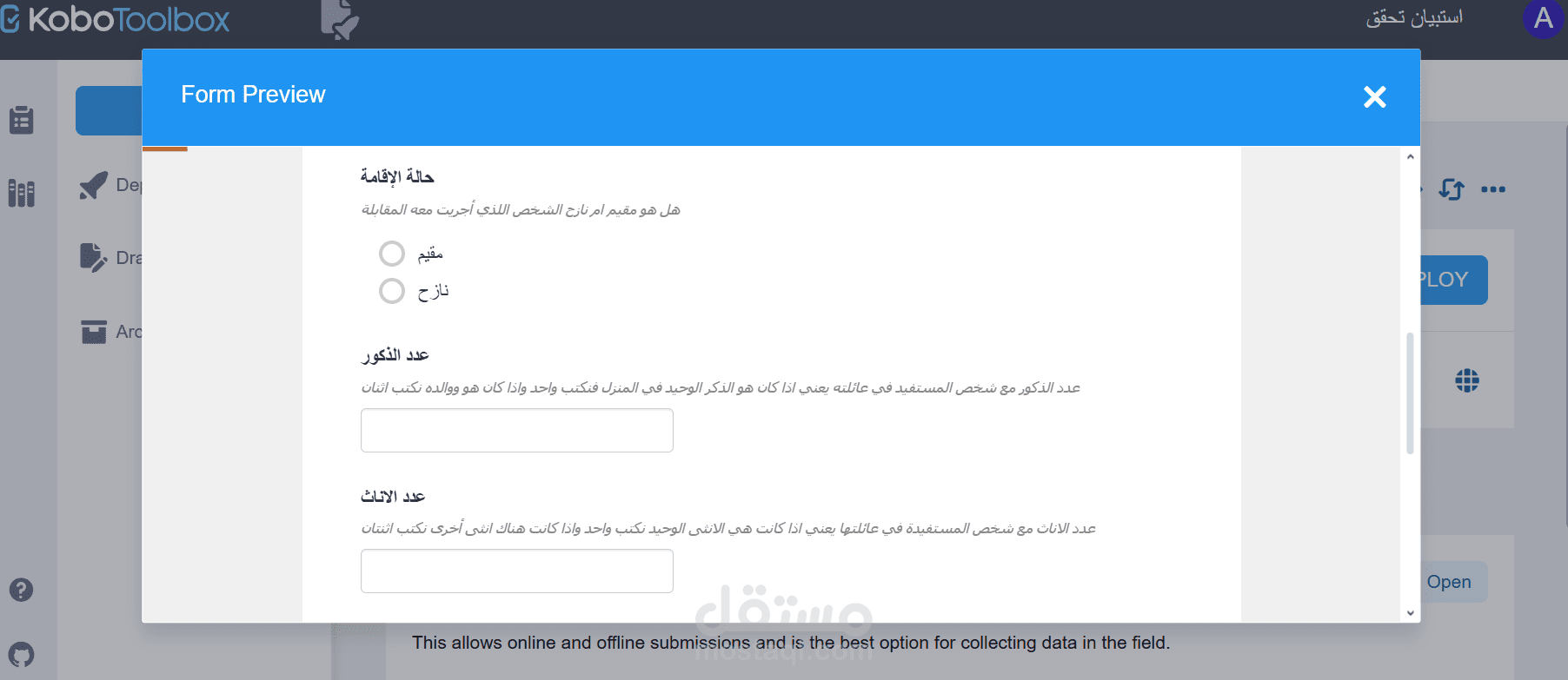تم تنفيذ الاستبيانات بدقة عالية لضمان جودة البيانات وسهولة استخدامها من قبل فرق جمع البيانات والمحللين.