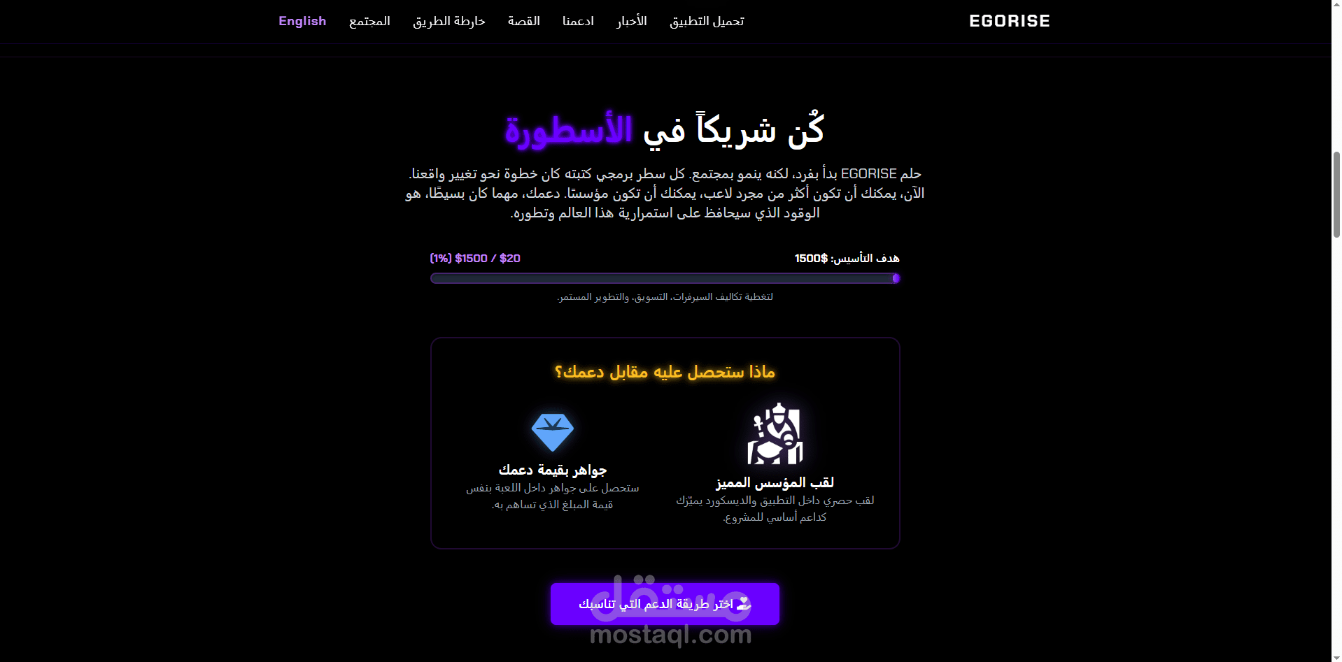 النتيجة هي صفحة هبوط احترافية وملحمية، جاهزة بالكامل لإطلاق المشروع واستقبال المستخدمين والداعمين، مع بنية تقنية قوية تدعم أهداف المشروع التسويقية.