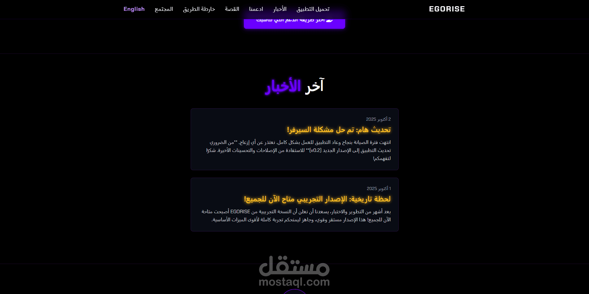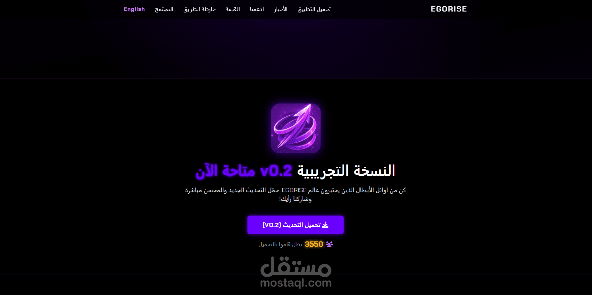 تم العمل مع العميل "Rizo"، وهو مطور شاب طموح، لإنشاء صفحة هبوط احترافية تكون بمثابة نقطة الإطلاق لمشروعه الأول: تطبيق EGORISE، وهو تطبيق يهدف إلى تحويل تطوير الذات إلى لعبة RPG ممتعة ومستوحاة من عالم الأنمي.