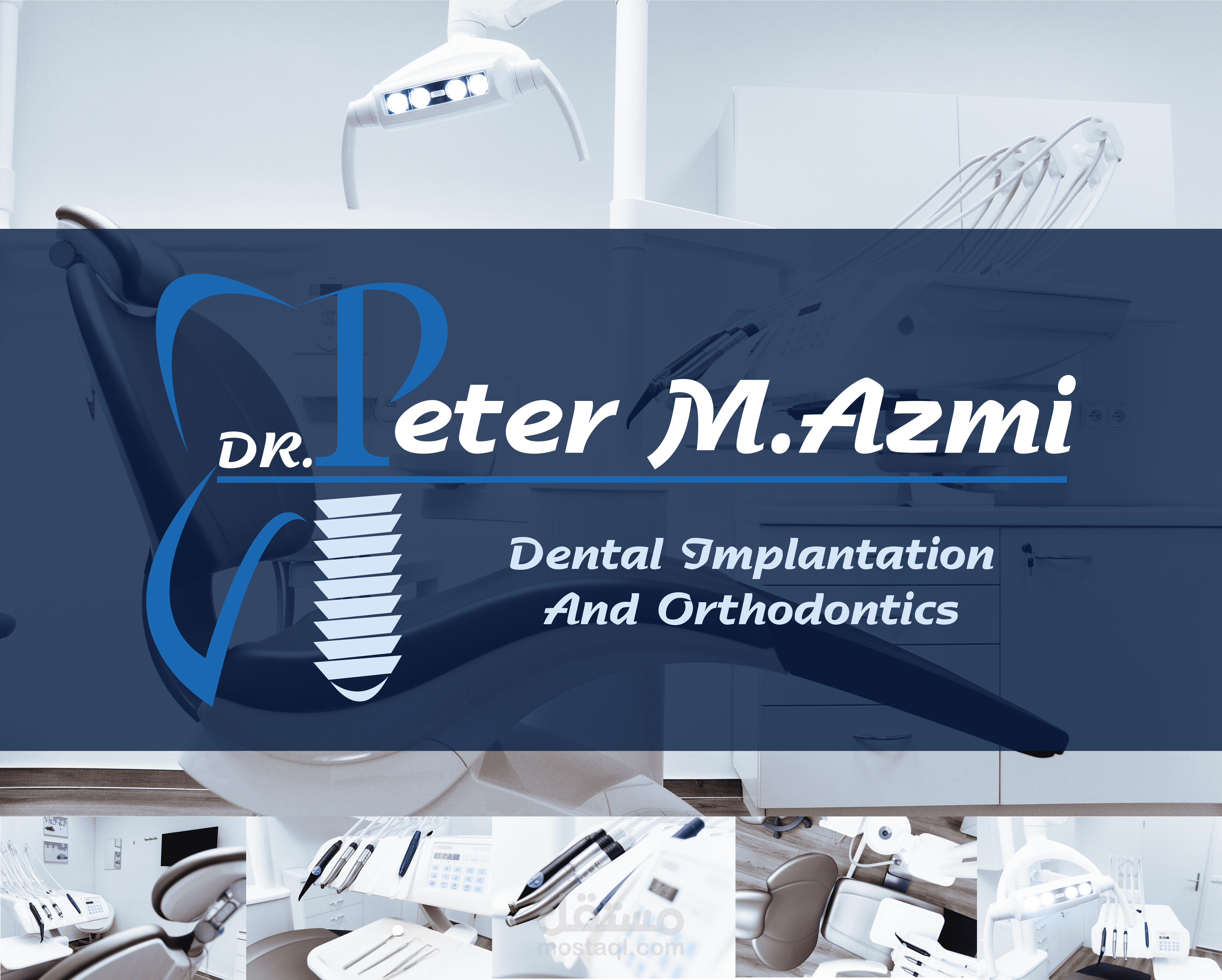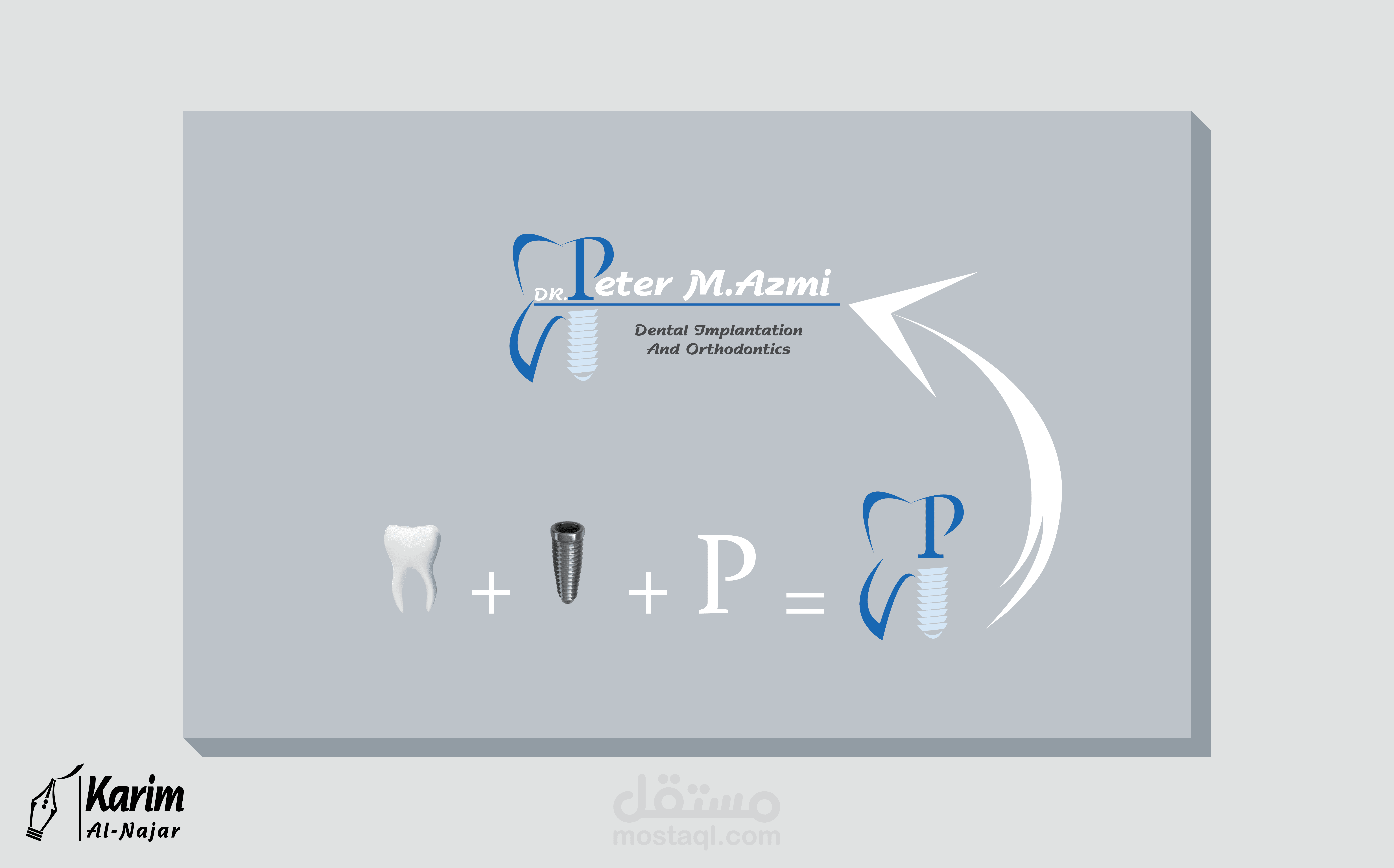 شعار لعيادة طبيب أسنان بمصر وهو بسيط جداً وفكرته هي عملية دمج بين أول حرف من اسم الدكتور أو العيادة وهو " Peter " وبين شئ من أشهر الادوات المستخدمة فالمجال وهي الجذور الصناعية في نفس الوقت كما هو موضح بالصور المرفقة
