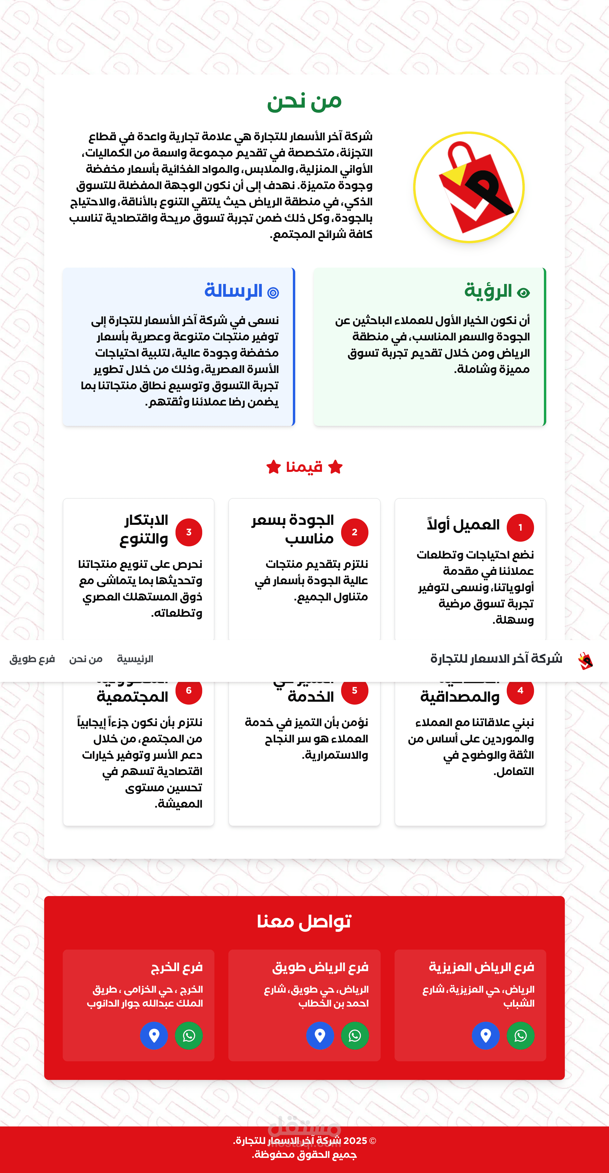 الموقع يحتوي على جميع روابط الشركة للـ 3 فروع