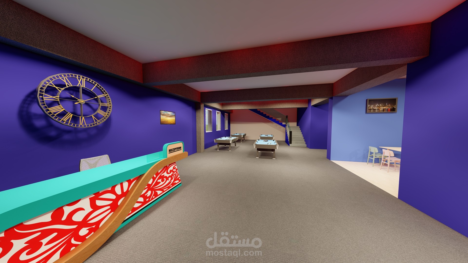 مركز العاب مصغر يحتوي على مطعم وصالة بلياردو وصالة Gaming وصالة بلايستيشن وصالة سينما