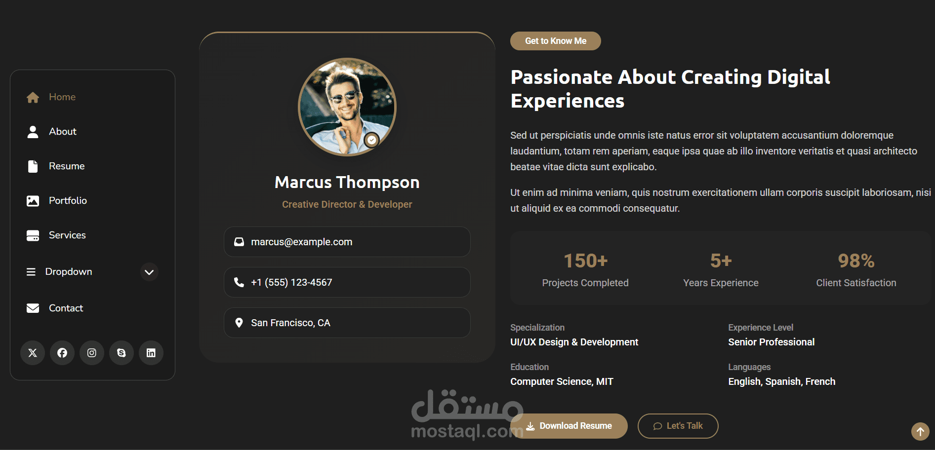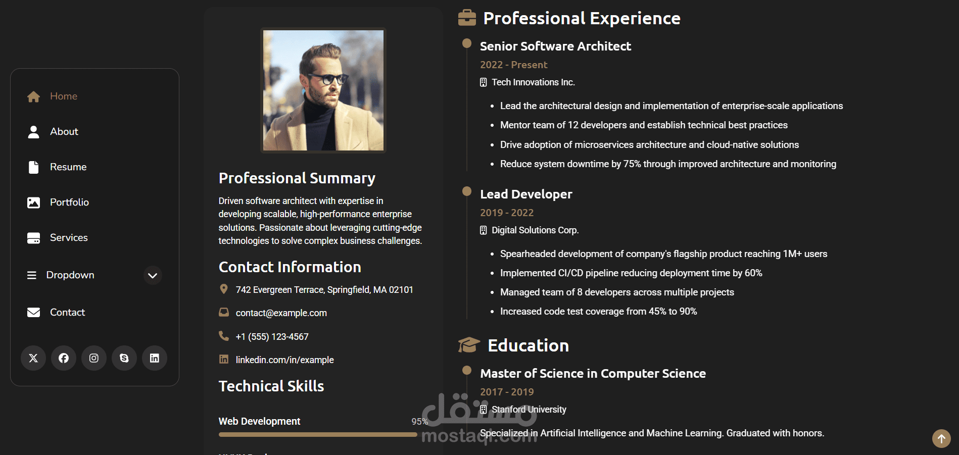 مشروع Snapfolio هو بروتفوليو تفاعلي معمول مخصوص لعرض الأعمال بشكل عصري ومنظم. الهدف منه إنه يقدّم تجربة سهلة للمستخدم سواء كان عميل أو زائر، بحيث يقدر يتصفّح المشاريع بسرعة ويشوف التفاصيل بشكل جذاب.