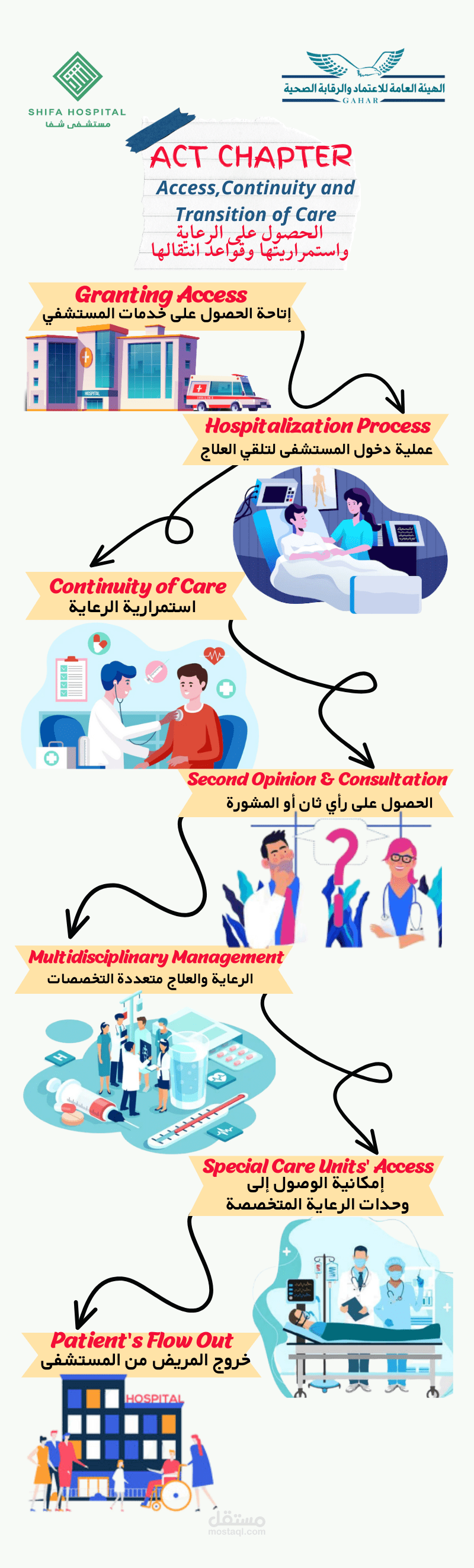 ●تصميم بوسترات ملخصة لمعايير الجودة لعرضها داخل أقسام المستشفى.