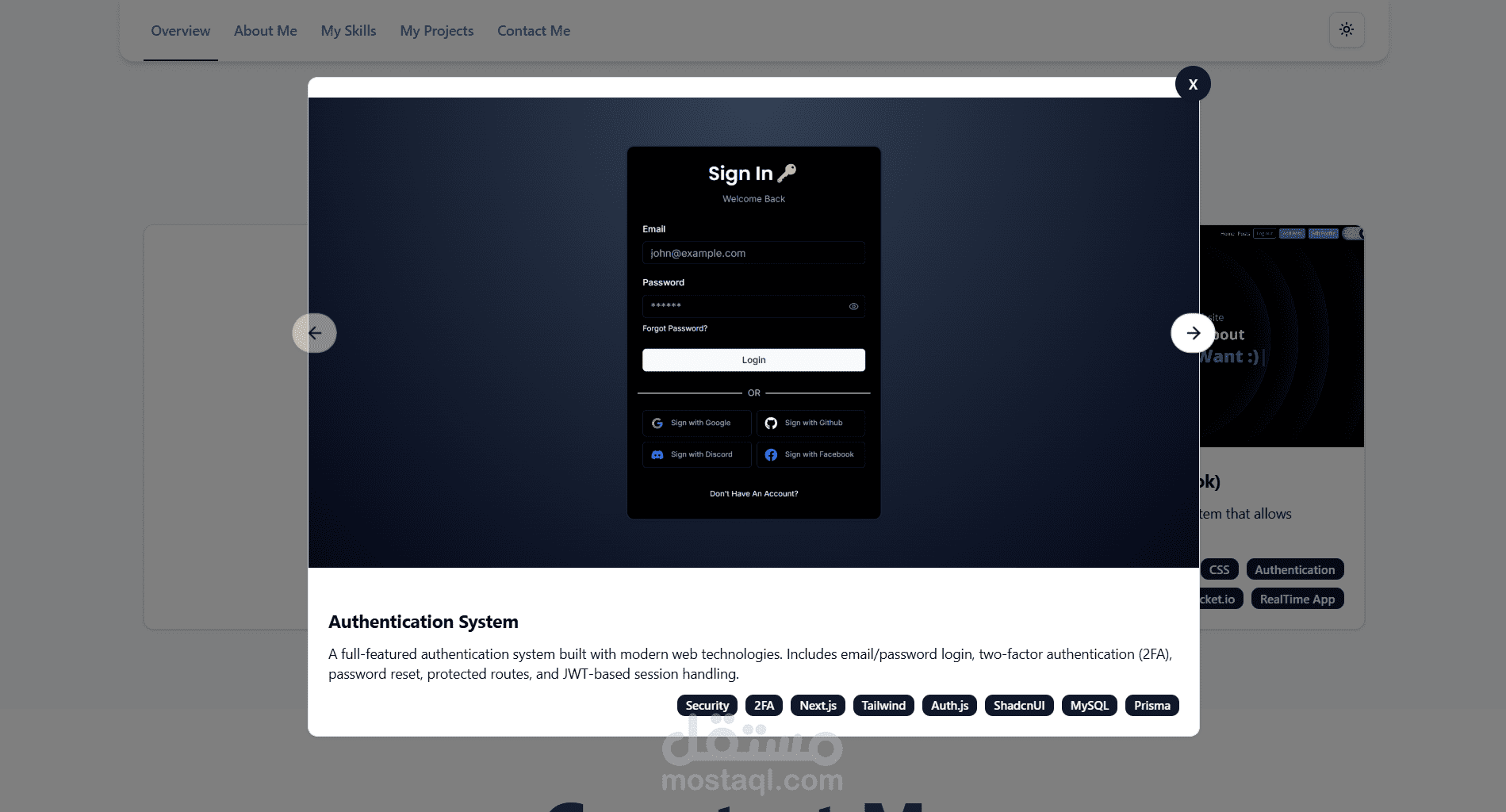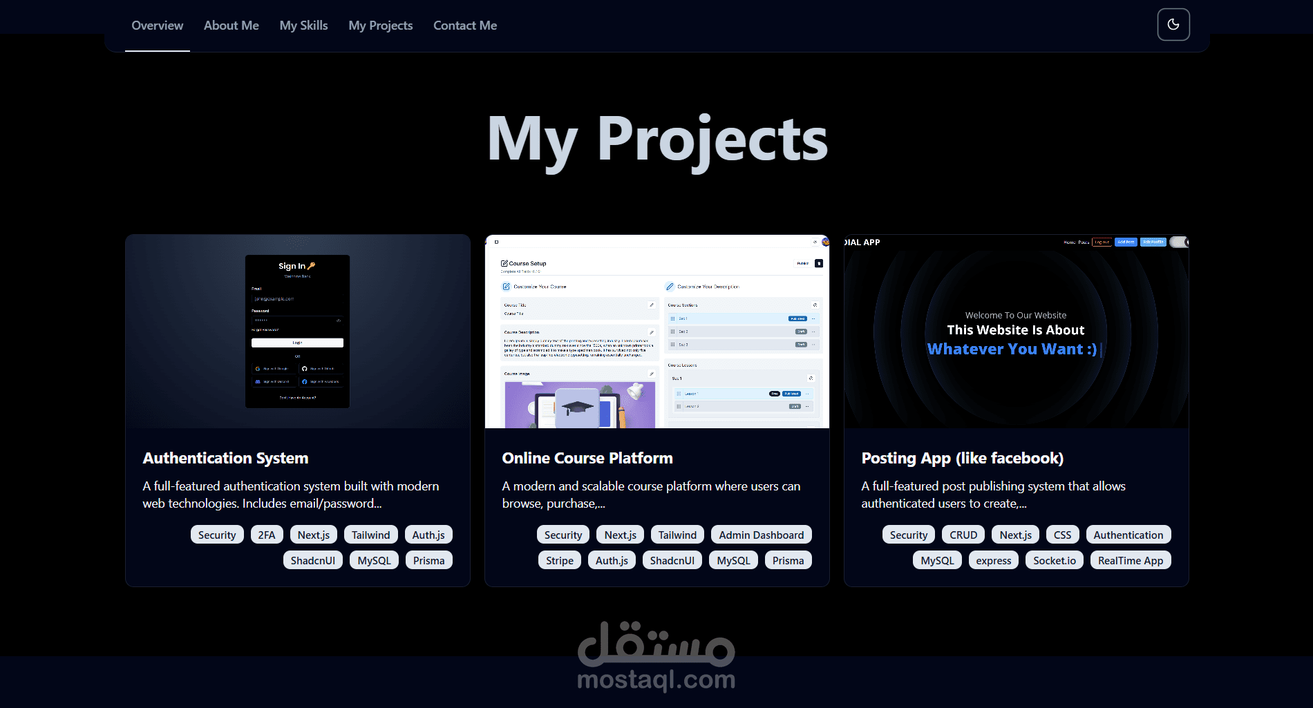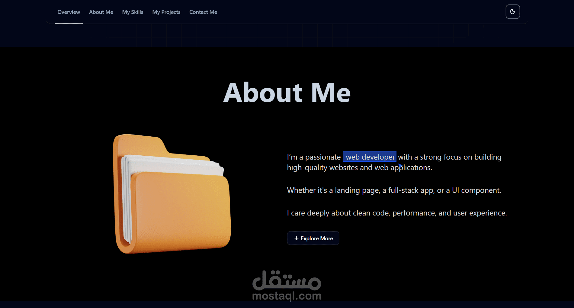موقع شخصي تم تطويره لعرض الأعمال والمهارات بشكل عصري واحترافي.