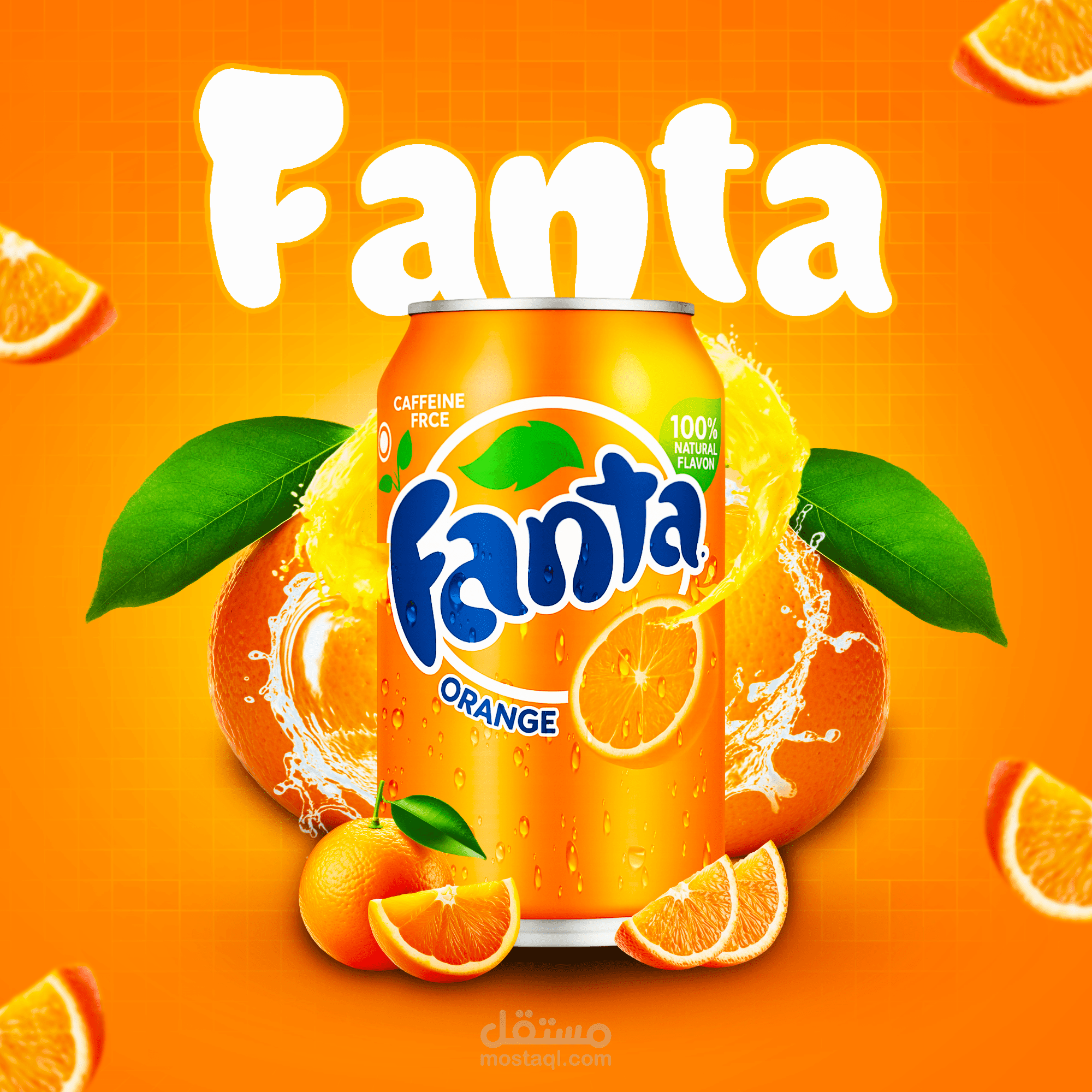 تصميم إعلان احترافي لمشروب "FANTA" بأسلوب بصري قوي يعزز العلامة التجارية