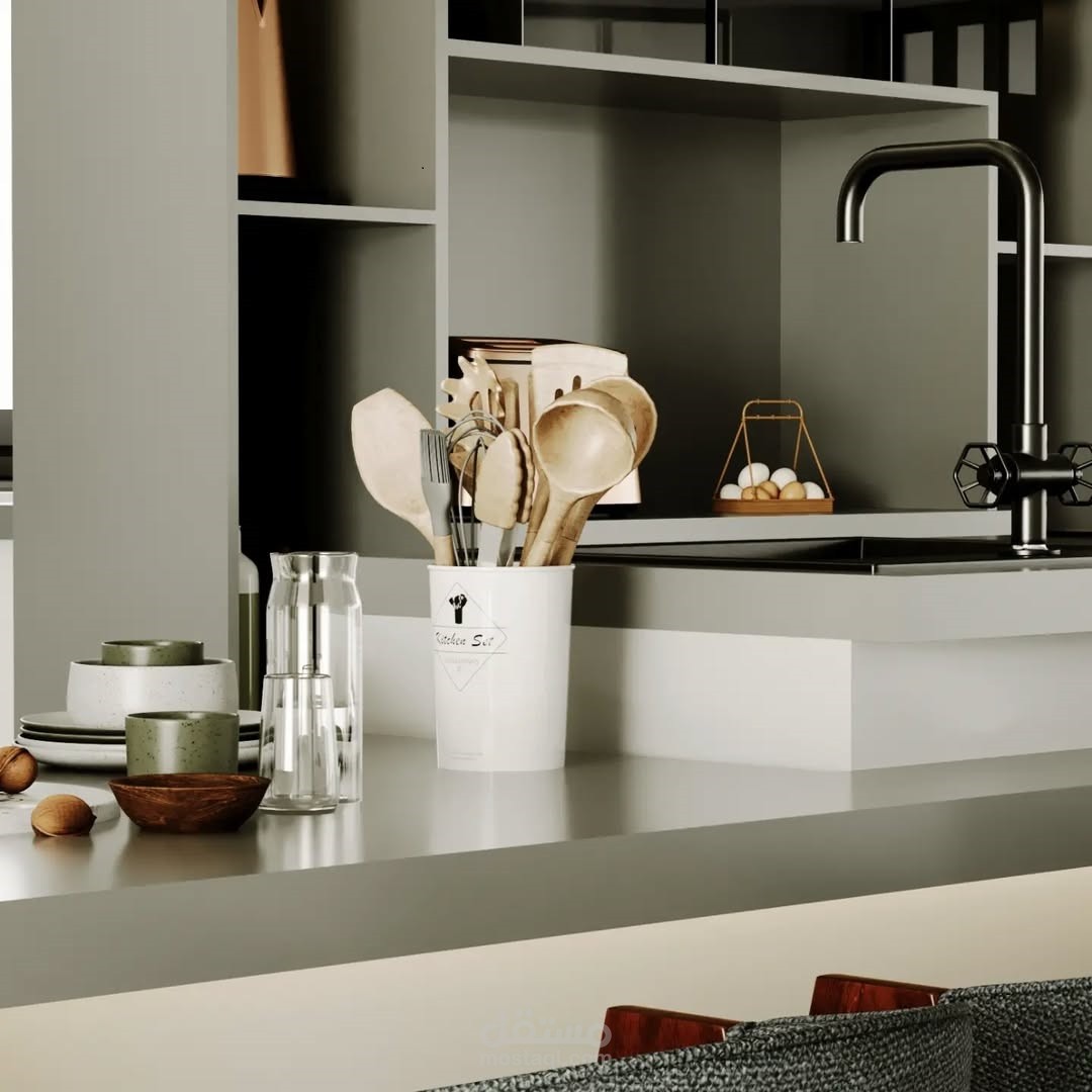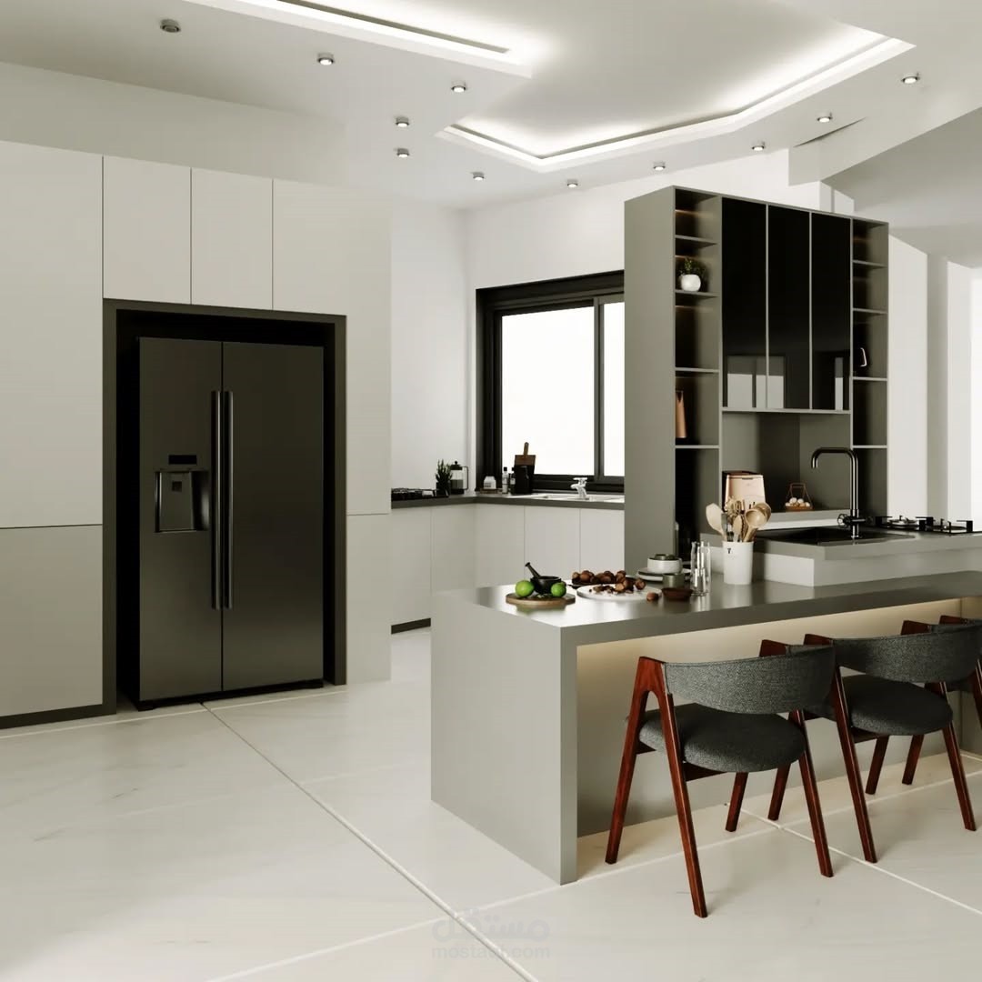تصميم مطبخ بأسلوب عصري في فيلا على الساحل