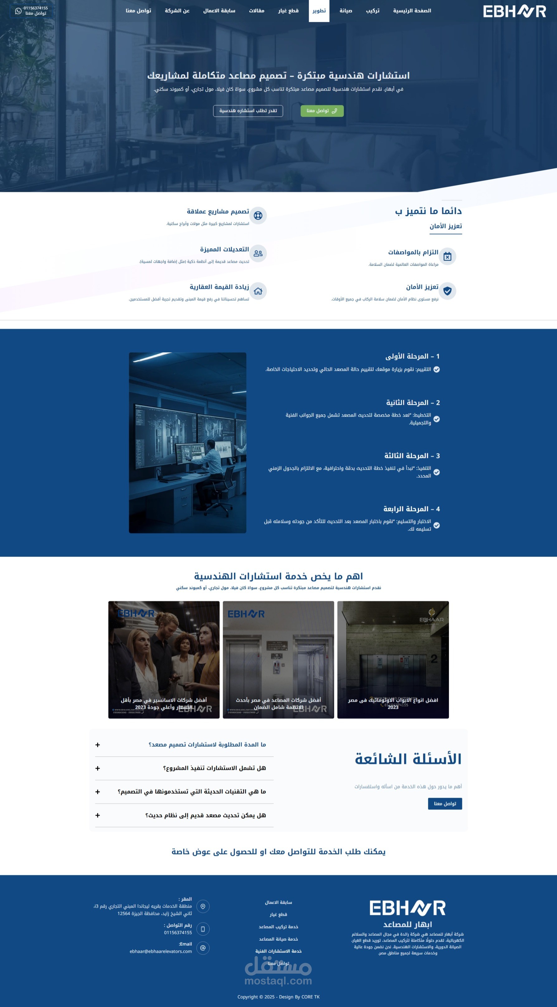 تواصل معنا مؤسس شركة "ابهار للمصاعد"، وهي شركة مصرية ناشئة، بهدف تأسيس حضور رقمي قوي واحترافي للشركة من الصفر. كان التحدي هو بناء علامة تجارية موثوقة في سوق المصاعد المصري، وجذب عملاء جدد (مثل أصحاب العقارات وشركات المقاولات) مهتمين بخدمات التوريد والتركيب والصيانة.