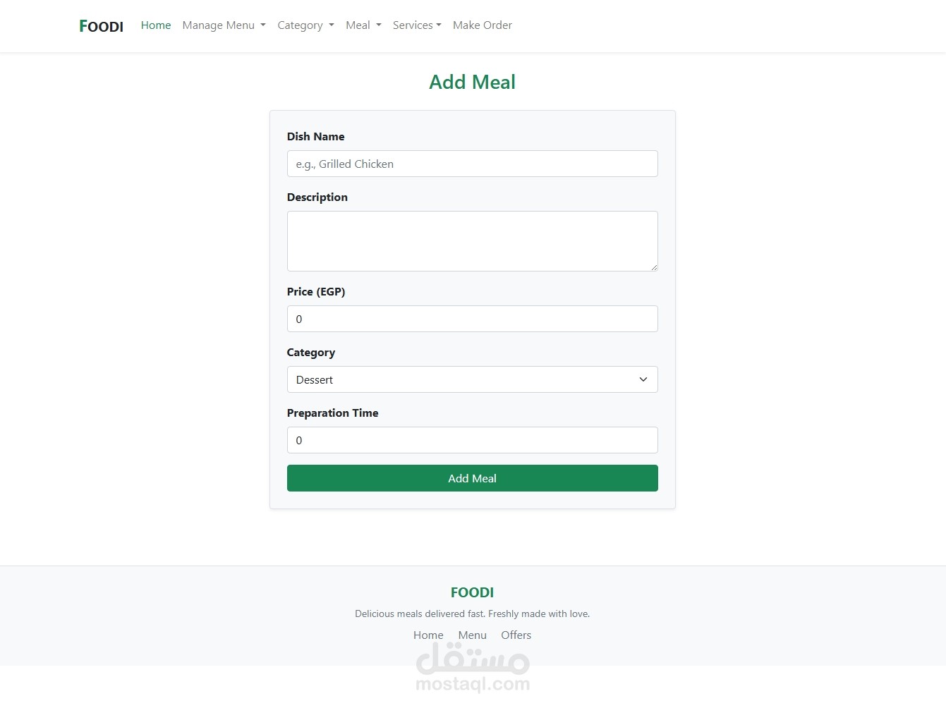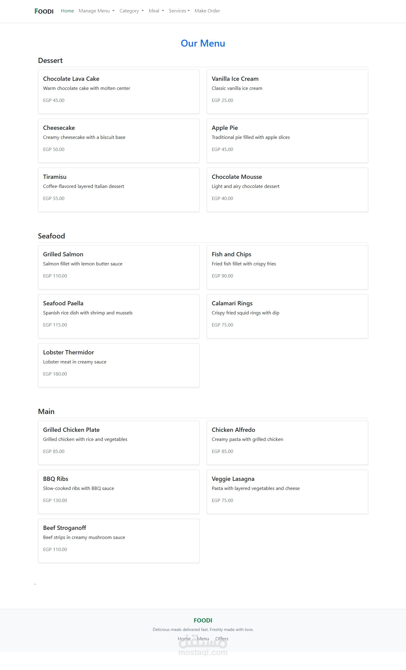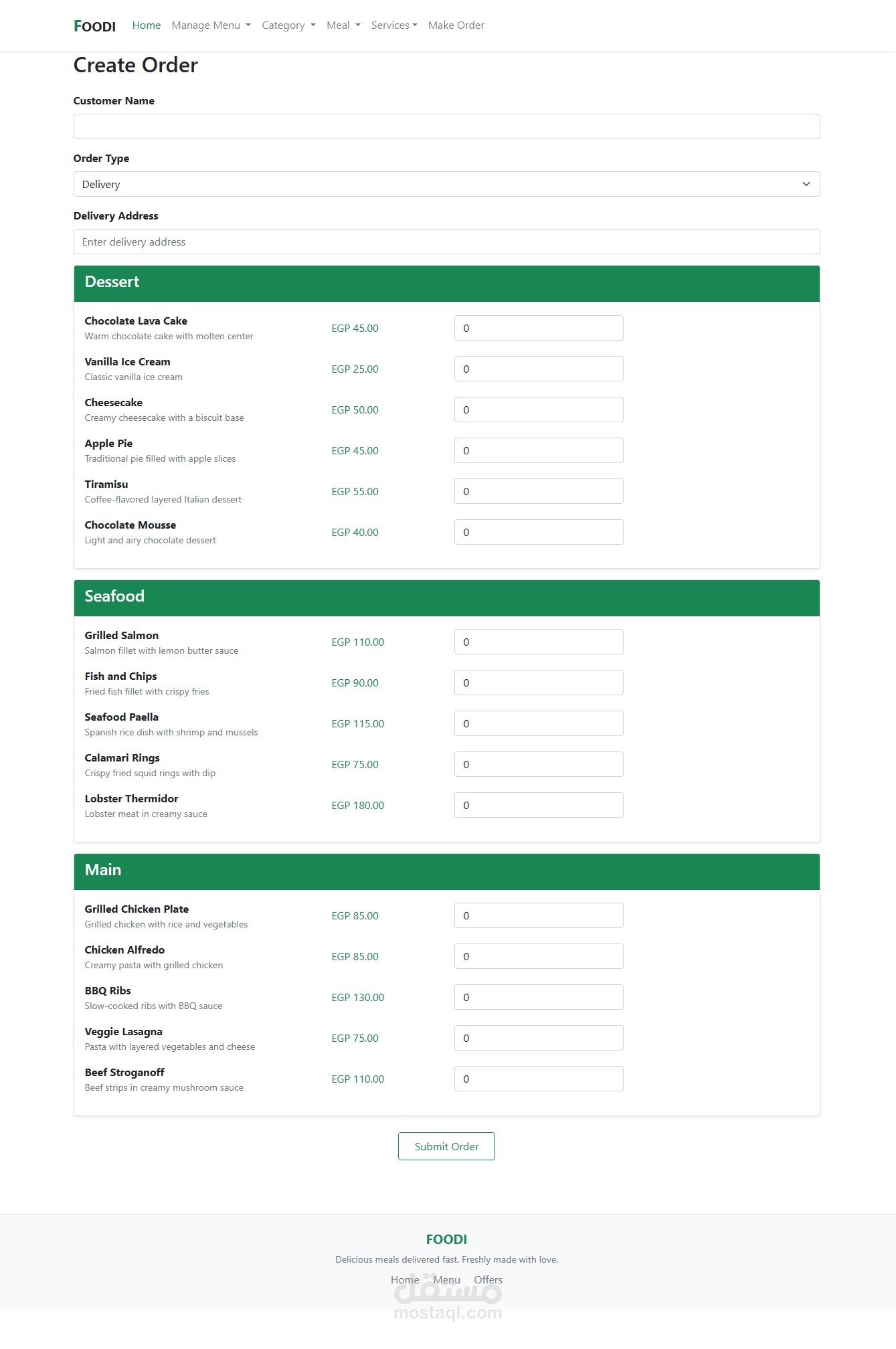 نظام إدارة مطعم باستخدام ASP.NET Core MVC، يشمل ميزات مثل تصفح قائمة الطعام، تنفيذ الطلبات (داخل المطعم، تيك أواي، توصيل)، تحديث حالة الطلب تلقائيًا، التحكم في توفر الأصناف حسب اليوم، وتسعير ذكي يتضمن خصومات، بالإضافة إلى لوحة تحكم تحليلية لمتابعة المبيعات.