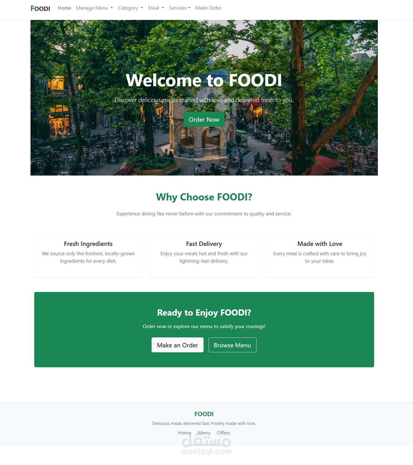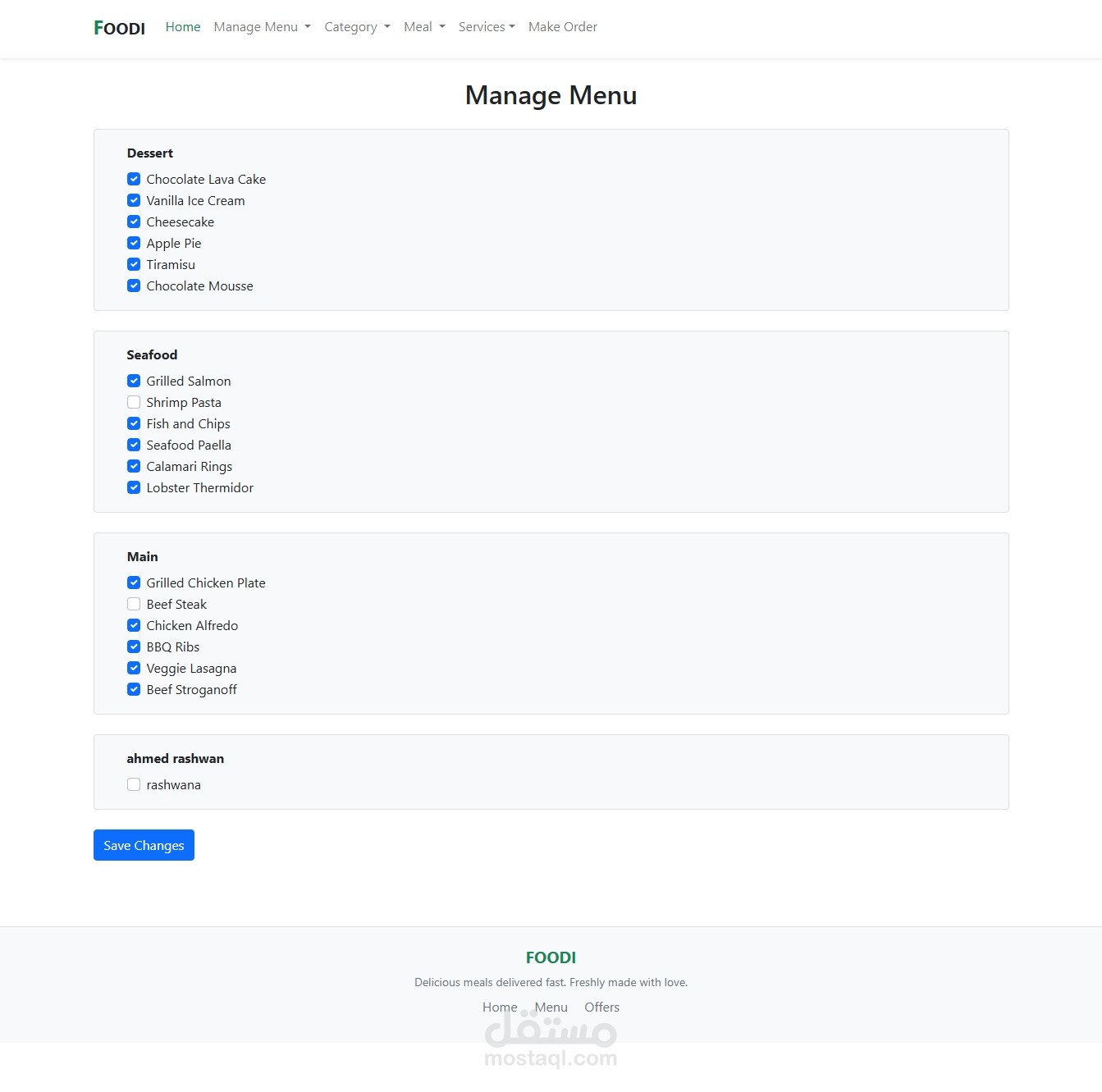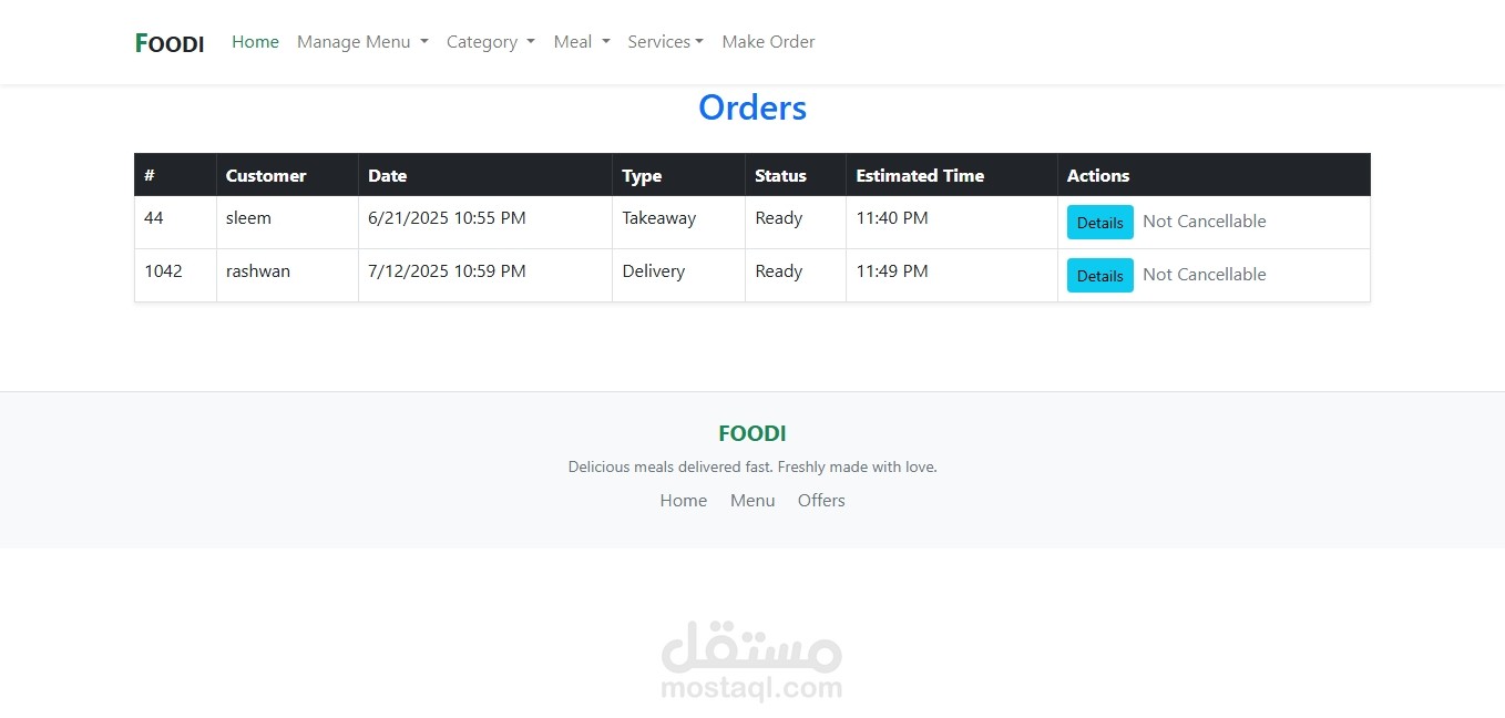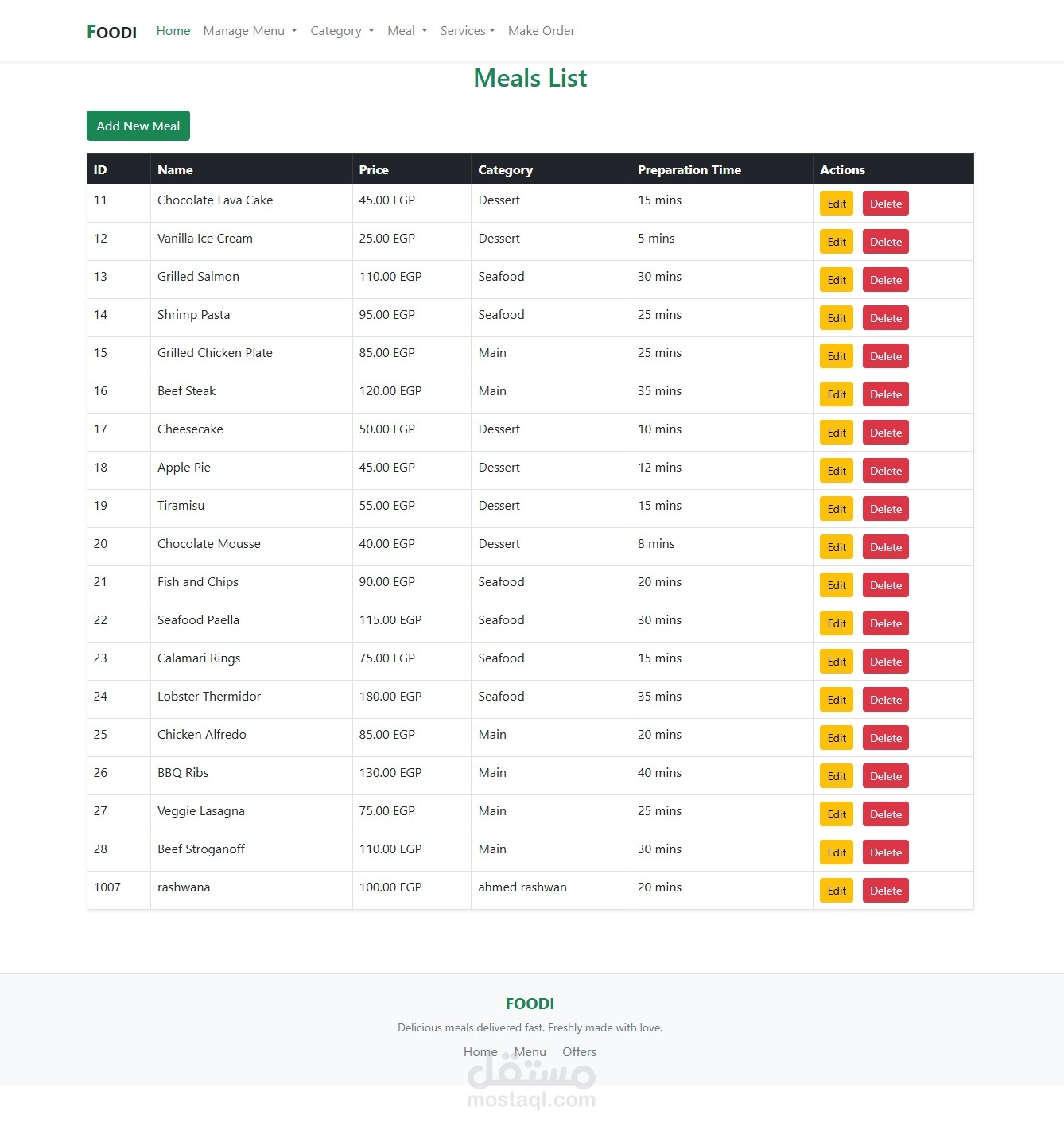 نظام إدارة مطعم باستخدام ASP.NET Core MVC، يشمل ميزات مثل تصفح قائمة الطعام، تنفيذ الطلبات (داخل المطعم، تيك أواي، توصيل)، تحديث حالة الطلب تلقائيًا، التحكم في توفر الأصناف حسب اليوم، وتسعير ذكي يتضمن خصومات، بالإضافة إلى لوحة تحكم تحليلية لمتابعة المبيعات.