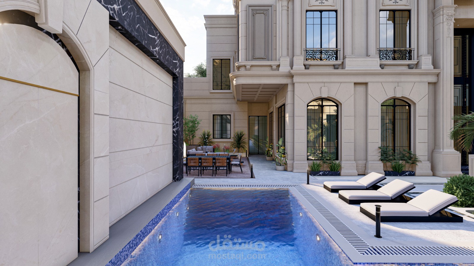 بشكل عام، يعكس التصميم مزيجًا متوازنًا بين الكلاسيكية الأوروبية والمسة العصرية من حيث ترتيب العناصر ونسبها، ليمنح إحساسًا بالفخامة والرقي مع الحفاظ على الطابع التراثي العريق.
