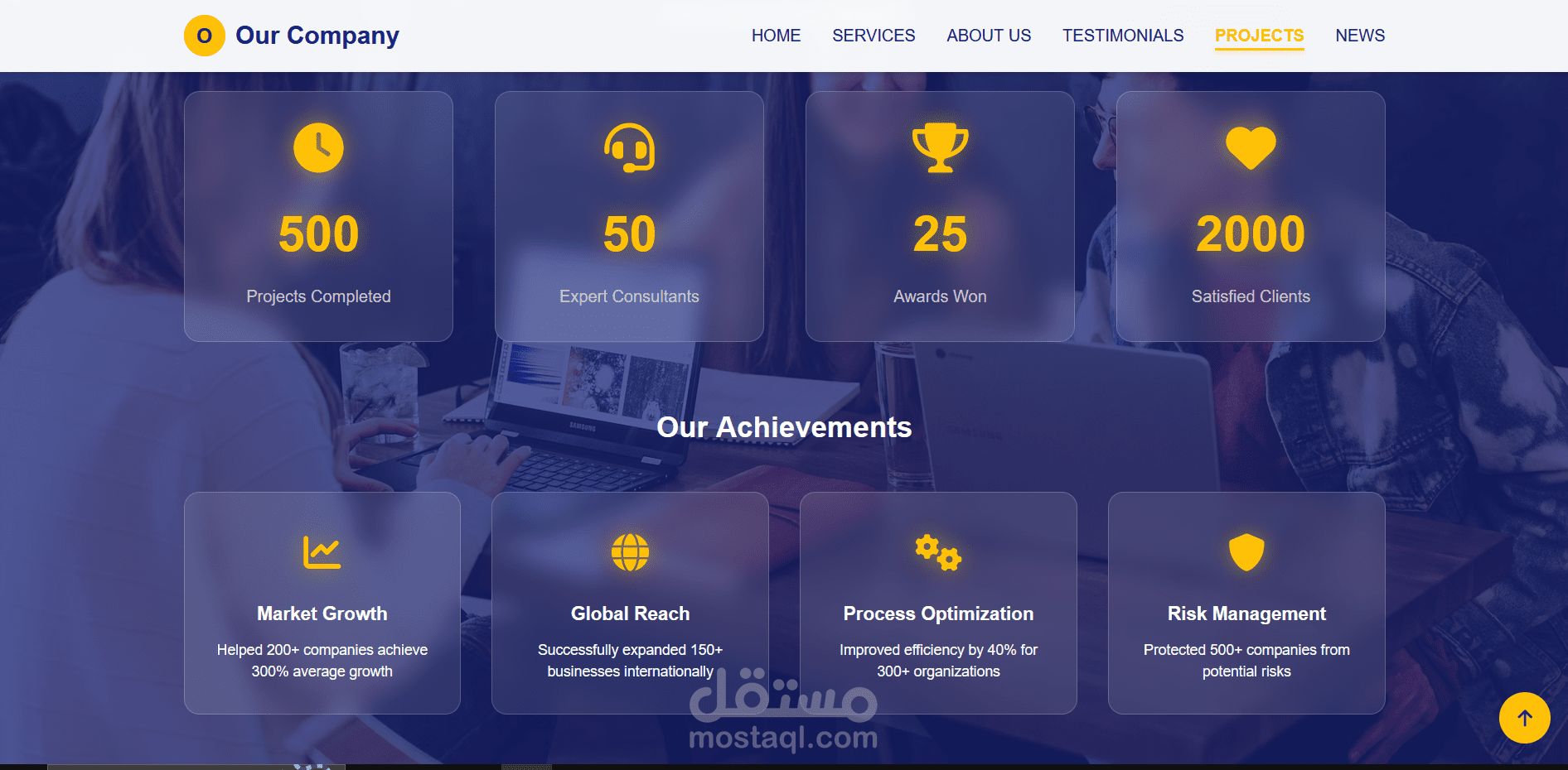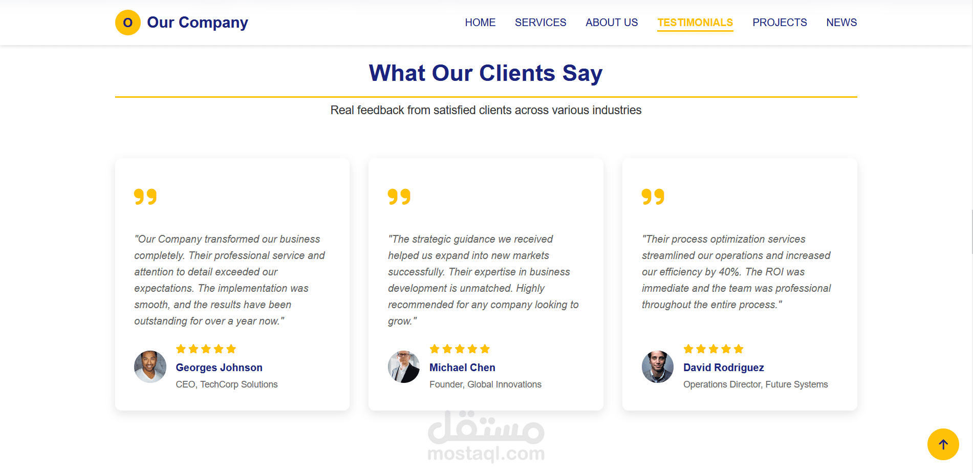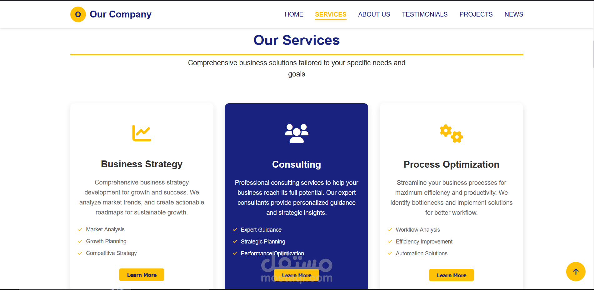 A comprehensive company website built with pure HTML, CSS, and JavaScript as a test project. The website includes all essential sections for a modern company website including homepage, about us, services, portfolio, team, contact form, and responsive design. Features include smooth animations, interactive elements, mobile-first design, and professional layout that demonstrates strong fundamentals in frontend development.