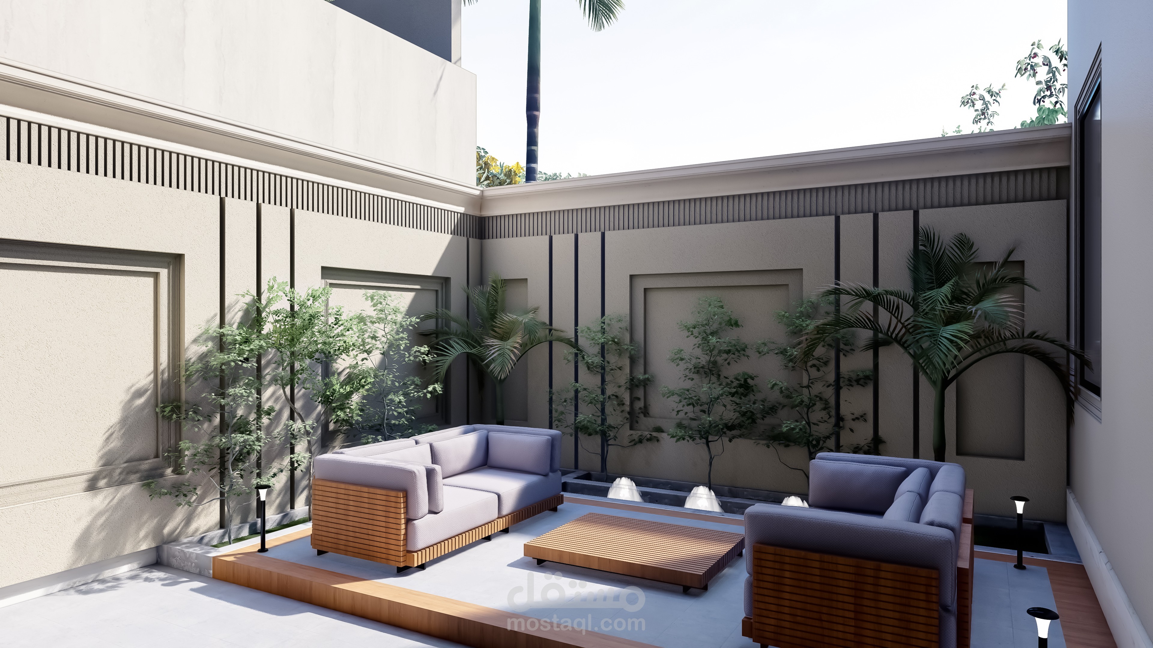 في التصميم ده، ركزت على التوازن البصري بين الكتل المعمارية واستخدام الإضاءة لإبراز التفاصيل بطريقة ناعمة وأنيقة.