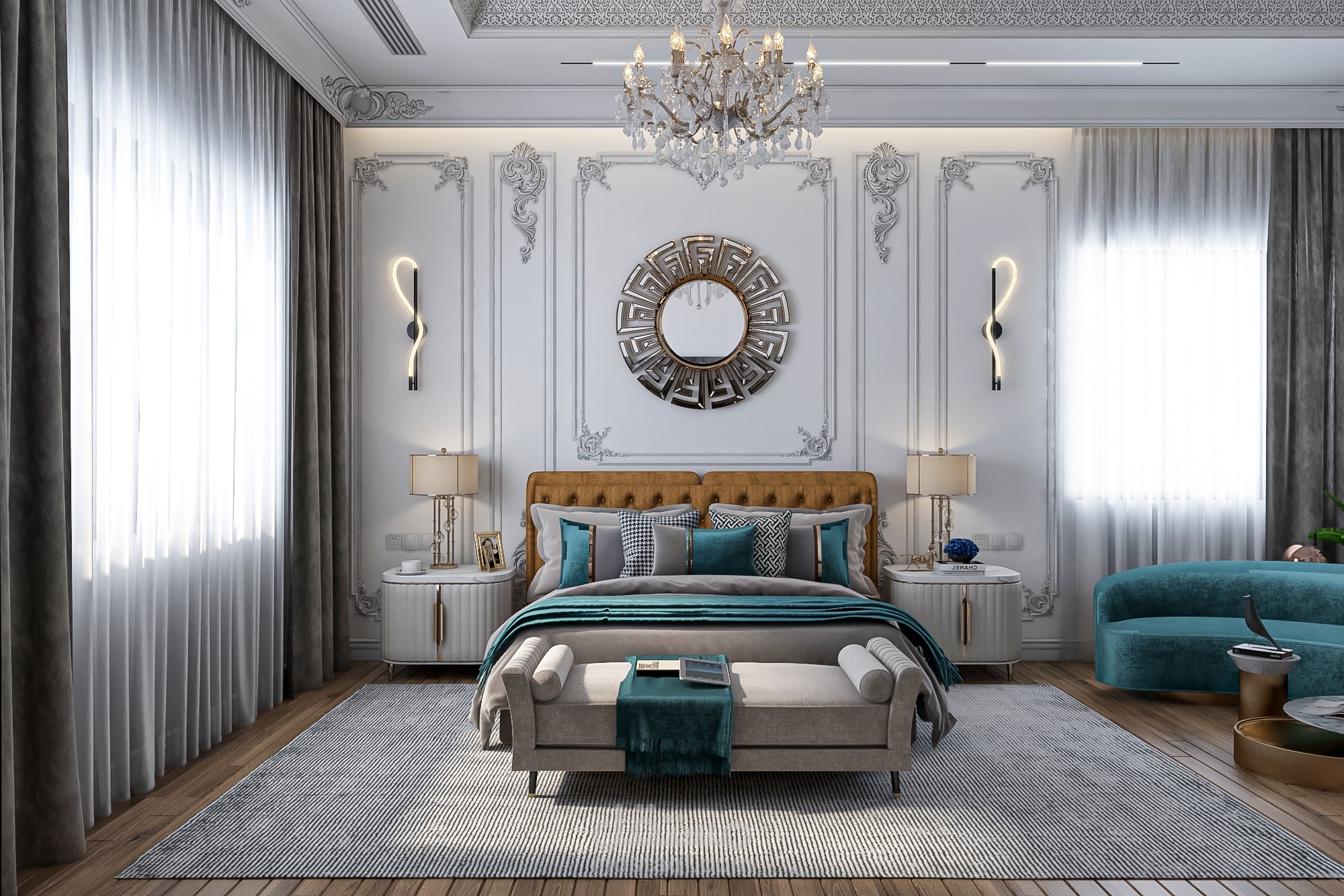 تصميم غرفة نوم رئيسية – طراز نيوكلاسيك مع لمسات مودرن
