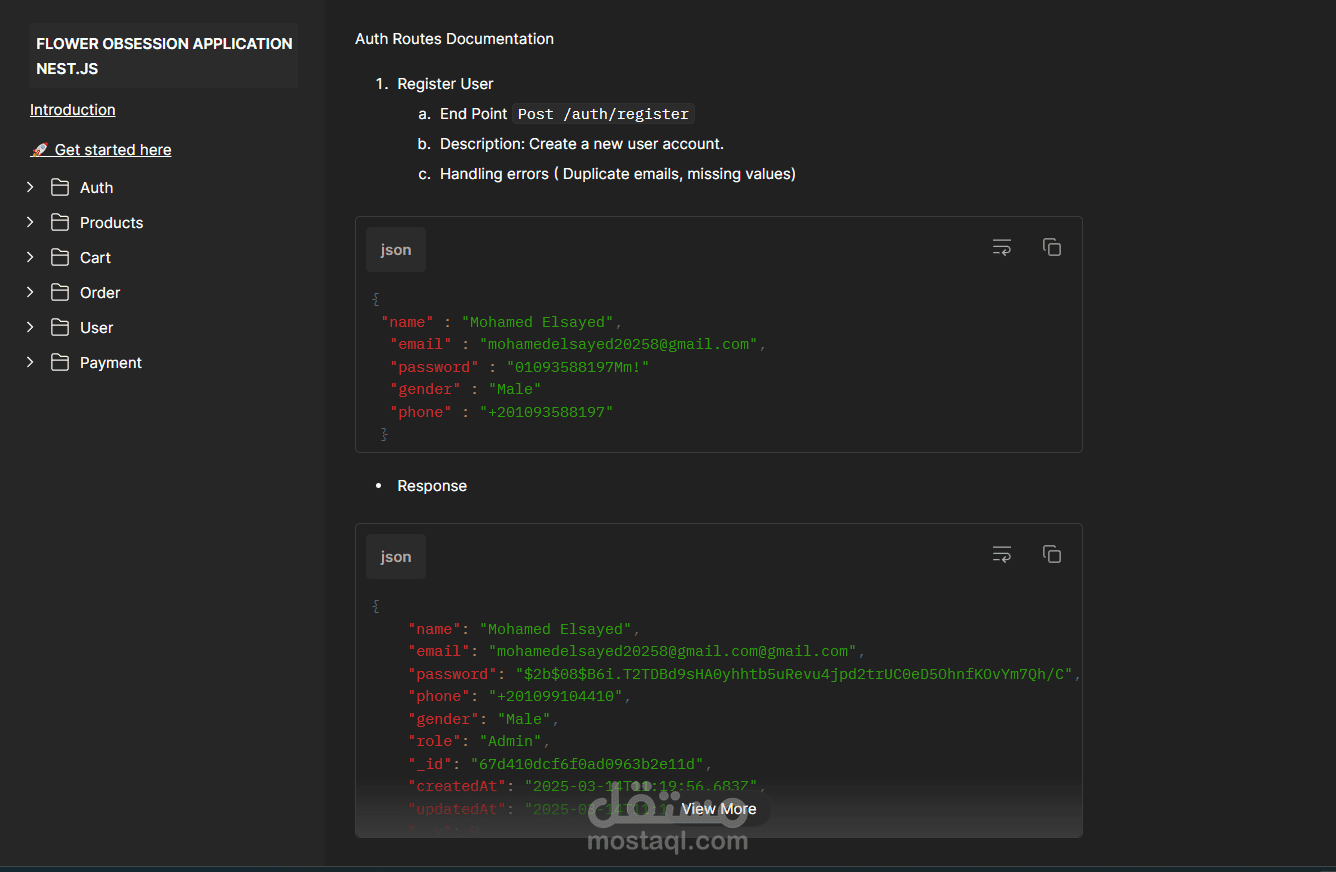 - مبنية باستخدام NestJS وبنية modular، و MongoDB عبر Mongoose