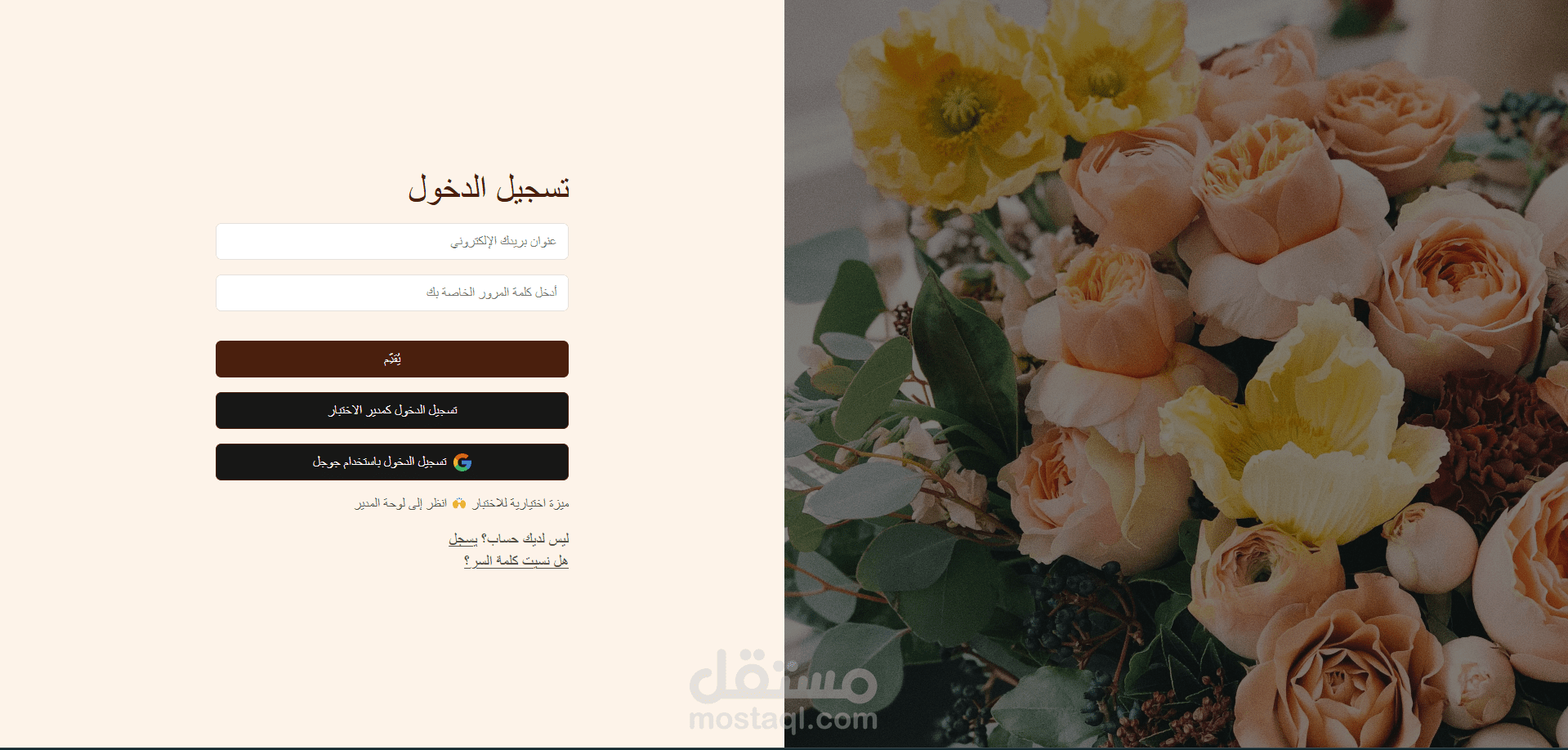 متجر زهور إلكتروني متكامل يعتمد على Next.js 14+ + TypeScript في الواجهة الأمامية، و NestJS + MongoDB في الخلفية، مصمم بأناقة وفق مبادئ SOLID. يدعم المنصة المحتوى الثنائي (إنجليزية/عربية)، ويوفر نظام تحقق آمن، لوحة تحكم تحليلية للإدارة، ودفع عبر Stripe، مع هيكلية modular أنيقة.