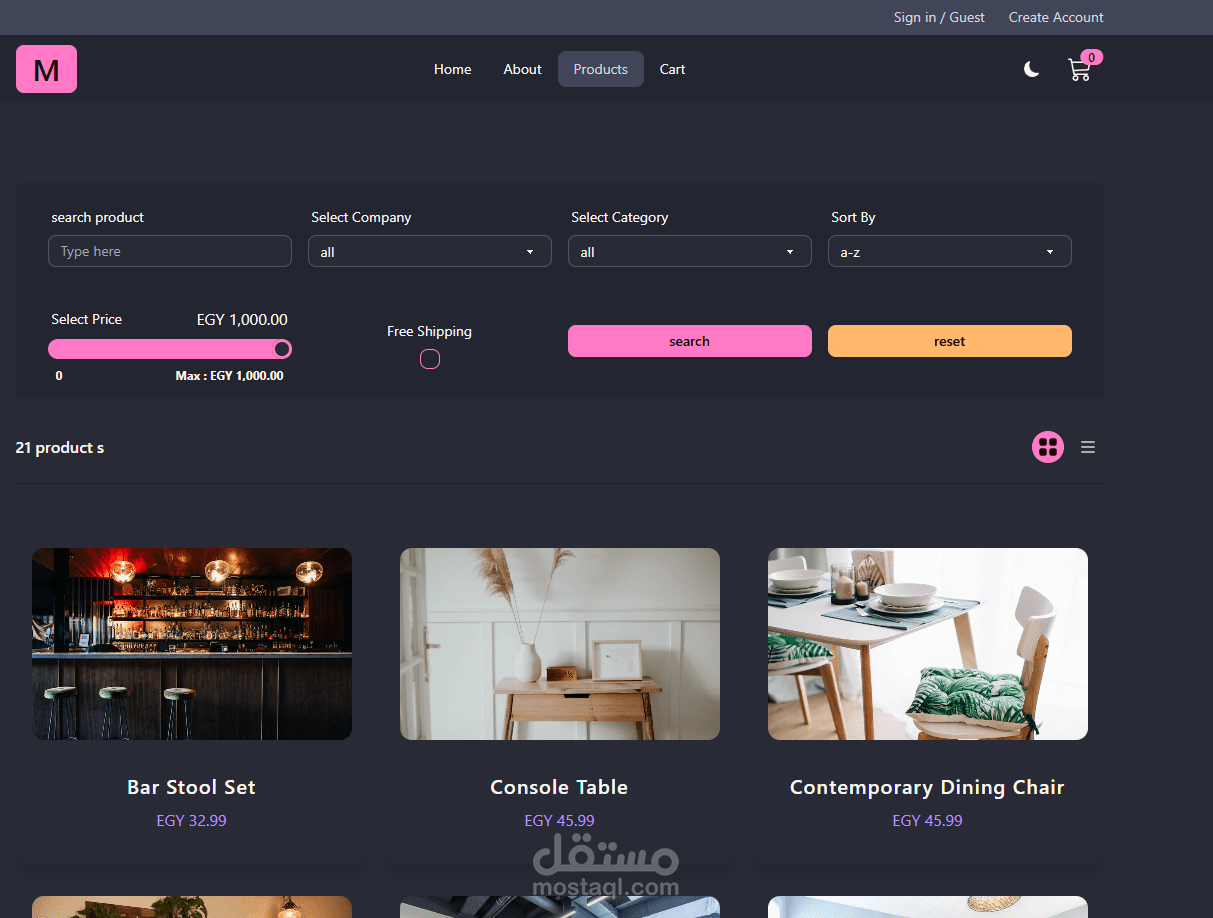 - هذا مشروع تطبيق ويب حديث وكامل لمتجر إلكتروني للأثاث، تم تطويره باستخدام MERN Stack (MongoDB، Express.js، React، Node.js) مع استخدام React 18، TypeScript، و Vite في الواجهة الأمامية.