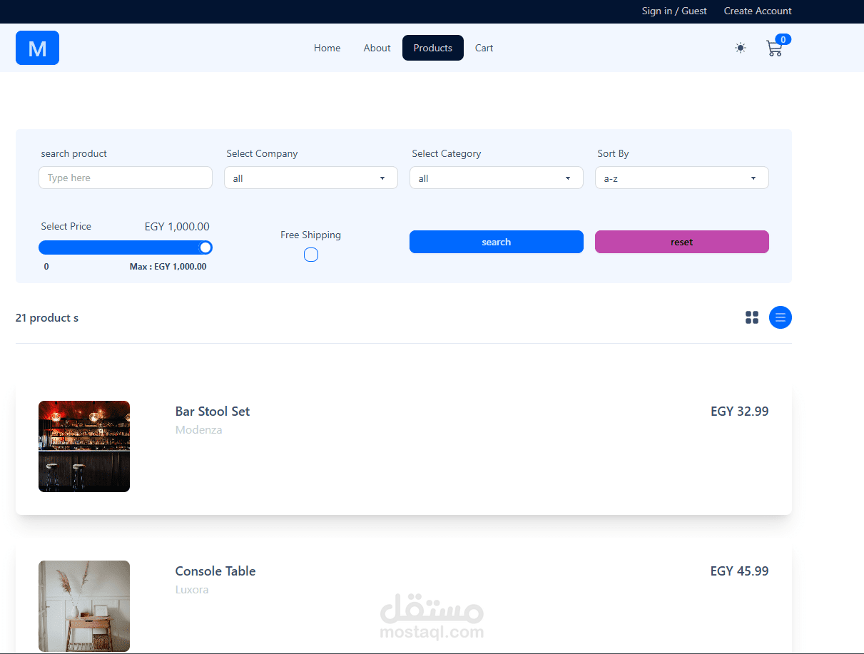 - يقدّم هذا المتجر تجربة تسوق متكاملة تشمل: تصفح المنتجات، البحث المتقدم، التصفية حسب الفئة والسعر، عربة تسوق، وإتمام عملية الشراء. كما يتميز بتصميم عصري متجاوب وواجهة مستخدم احترافية.