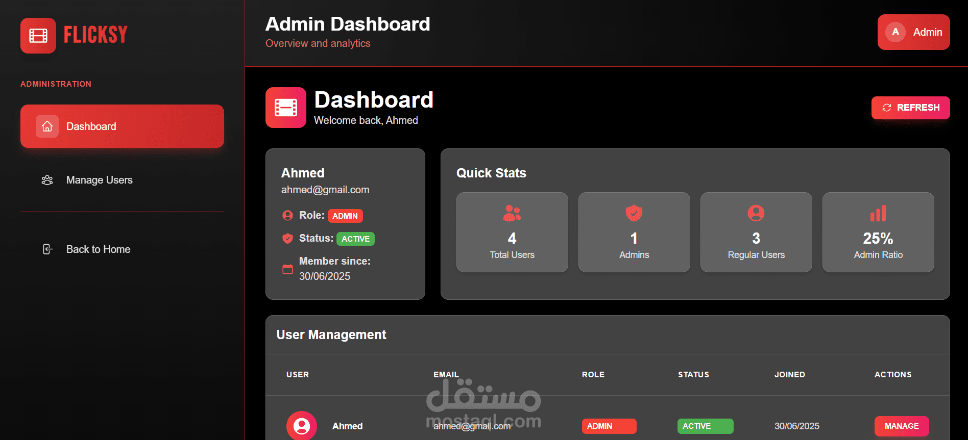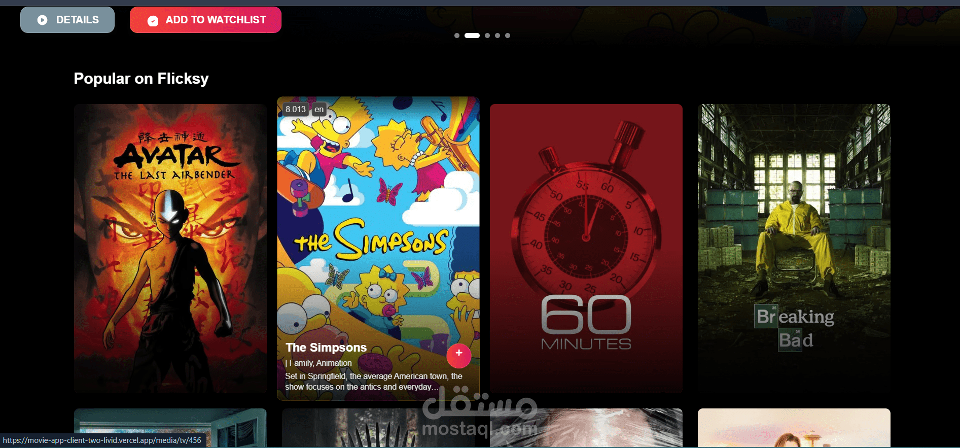 فليكسي تطبيق ويب متكامل، يُمثّل منصة شاملة لاكتشاف الأفلام والبرامج التلفزيونية. يتميز بتصميم عصري وسريع الاستجابة، مع إمكانية مصادقة المستخدم، وقوائم مشاهدة شخصية، وإمكانيات واسعة لتصفح الوسائط.
