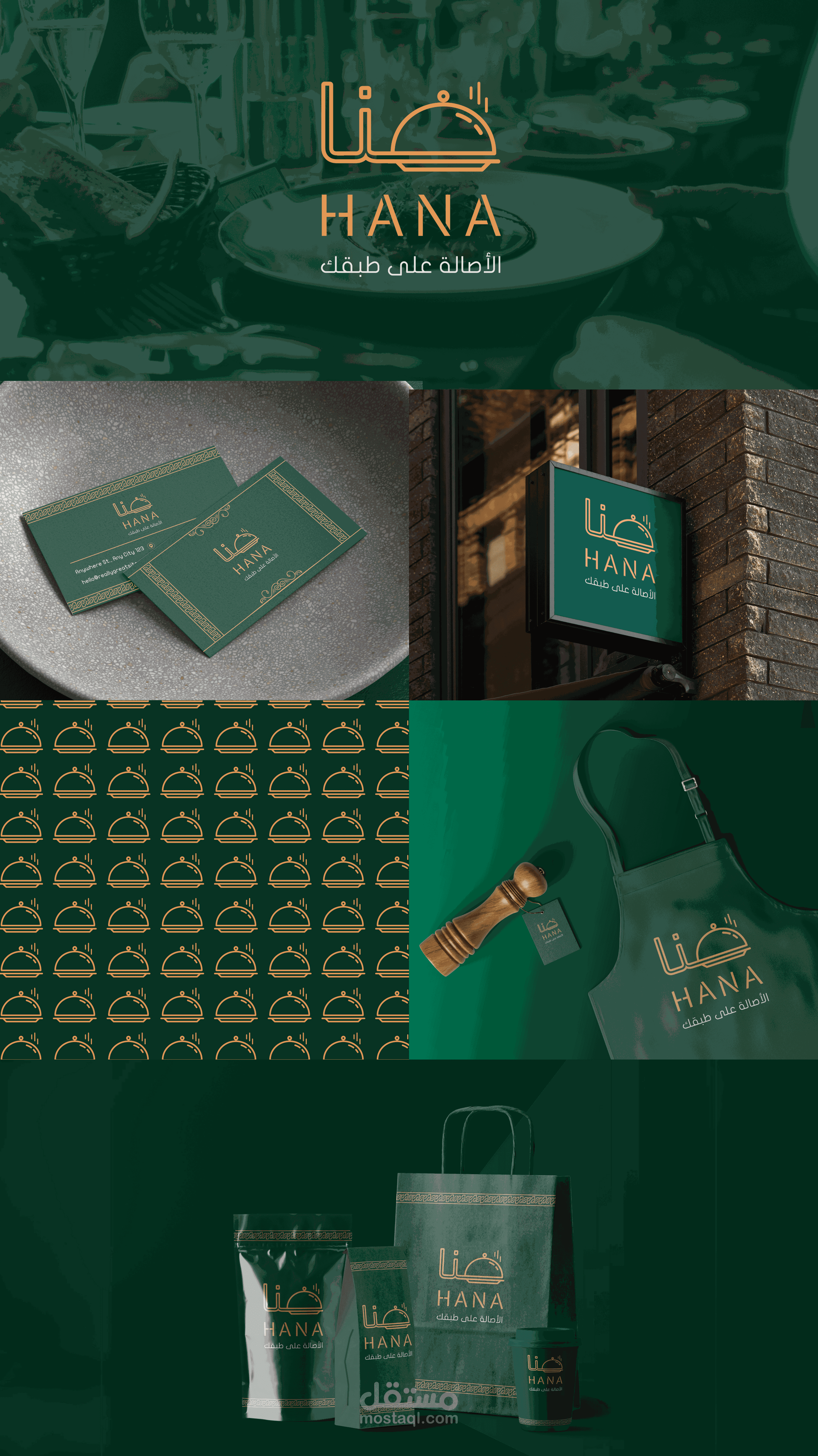 نُقدّم لكم نموذجًا متكاملاً لتصميم هوية بصرية راقية لمطعم "هنا – HANA"، الذي يجمع بين عراقة المذاق العربي وأناقة التصاميم الحديثة، ليقدّم تجربة حسية متكاملة تبدأ من الشعار وتنتهي بأدق التفاصيل المرئية.